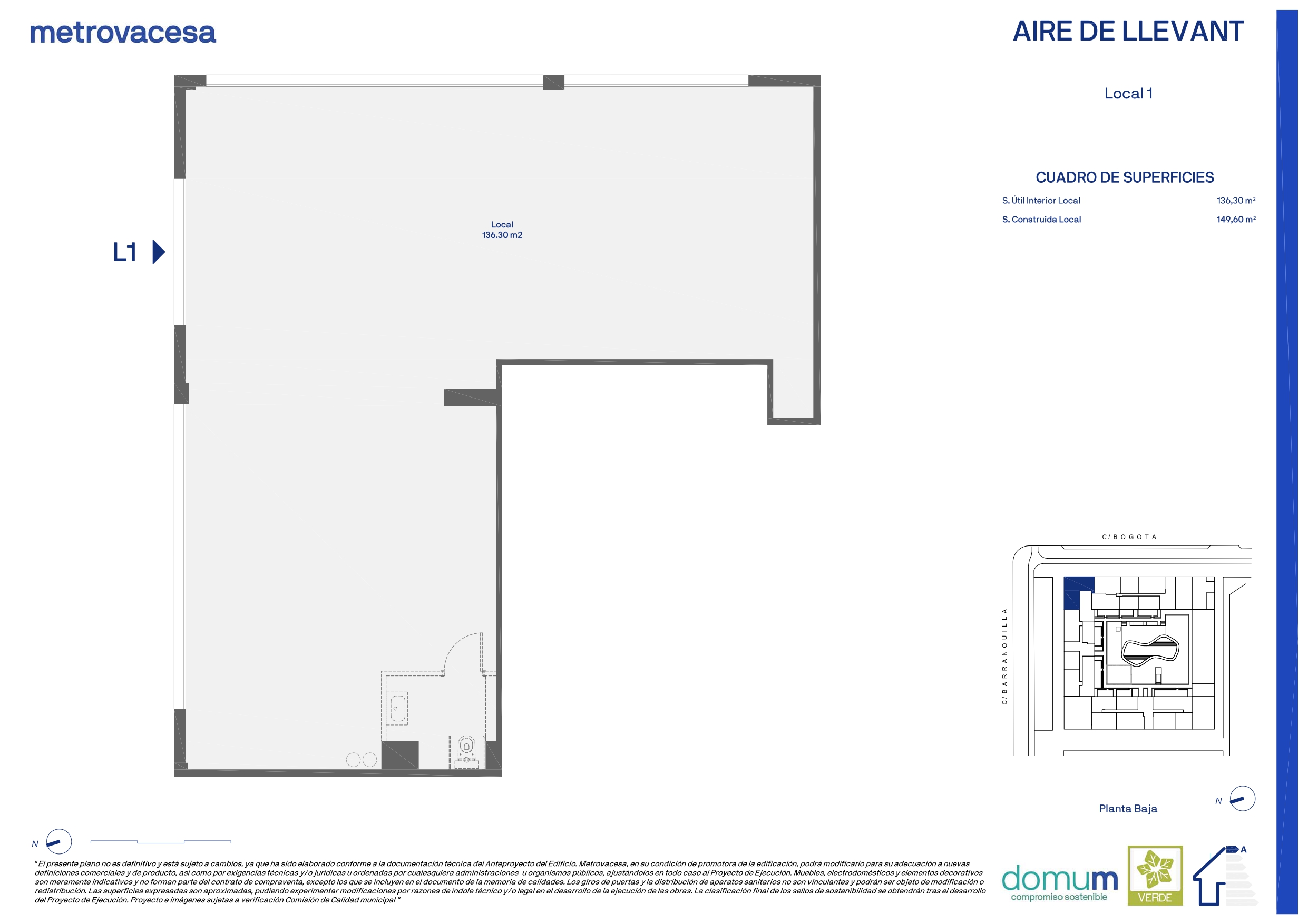 Disponemos locales comerciales a pie de calle, diáfanos con superficies entre 150 y 191 metros cuadrados.