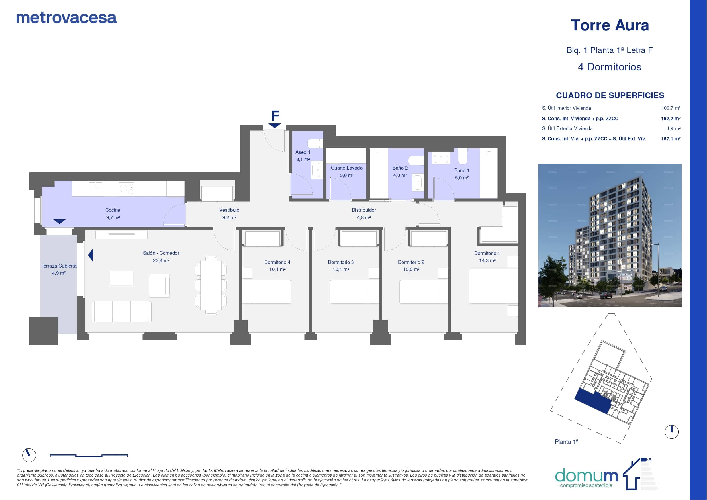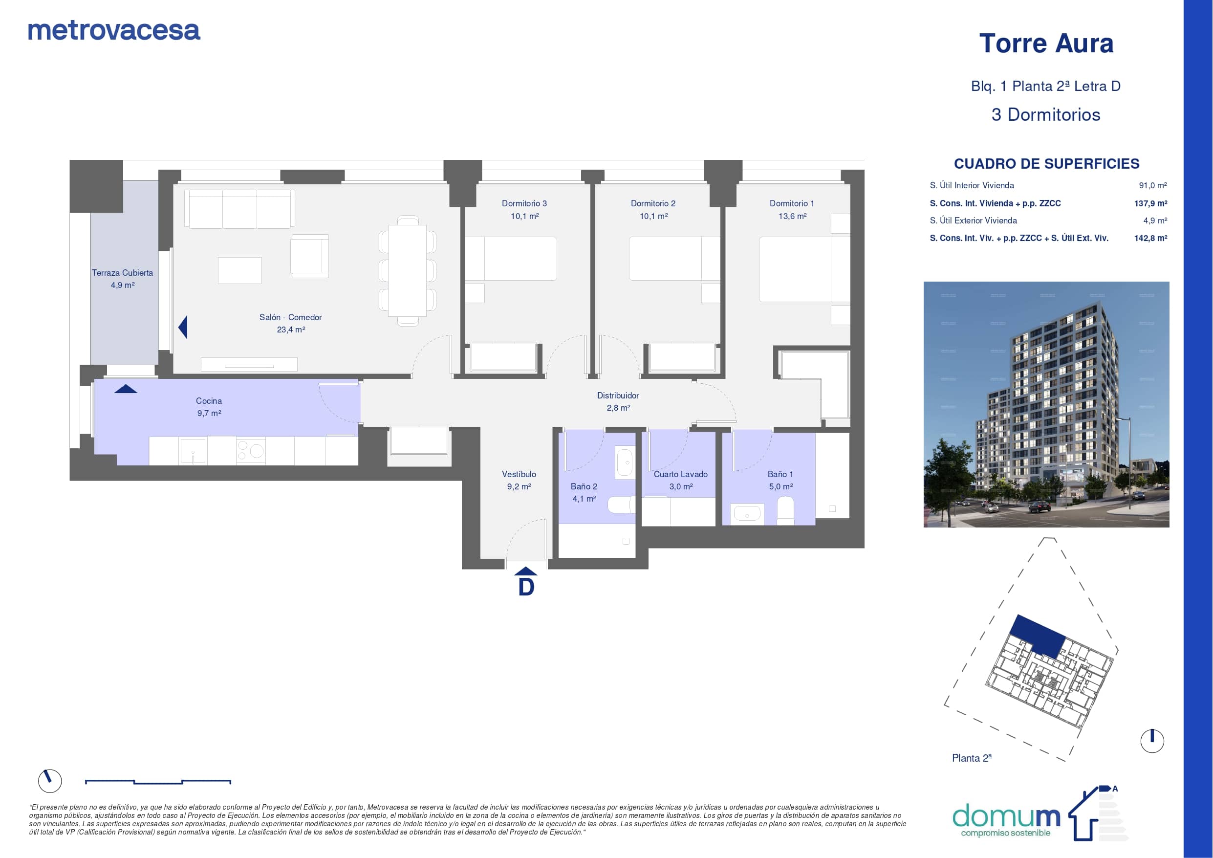 Con opciones de viviendas de 2, 3 y 4 dormitorios, con 2 plazas de garaje, trastero y una gran variedad de tamaños y orientaciones, Torre Aura se ajusta perfectamente a las demandas únicas de cada hogar.
