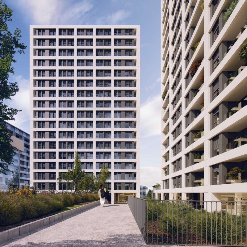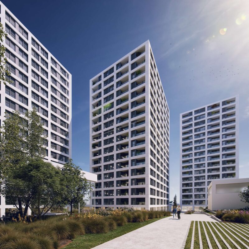 En A Coruña, en el nuevo barrio de San Pedro de Visma, se encuentra Torre Aura. Un complejo de 18 alturas y 96 viviendas, todas ellas con terrazas. Las viviendas han sido diseñadas para generar espacios amables, aprovechando al máximo la luz del entorno.