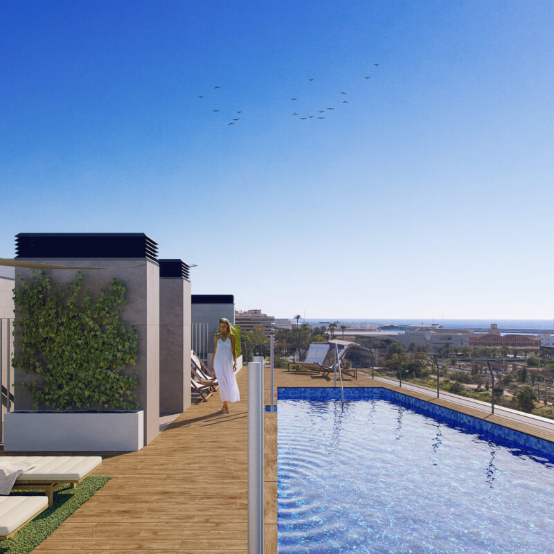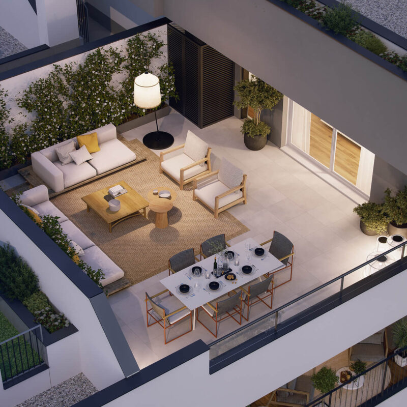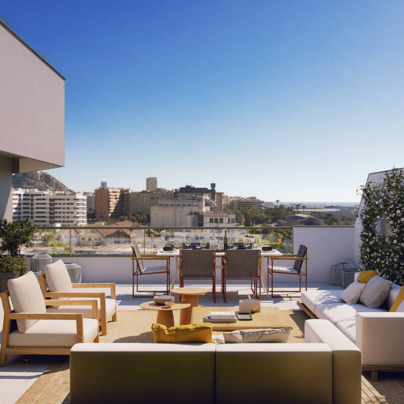 Disfruta de nuestras amplias terrazas, perfectas para relajarte y disfrutar del aire libre. Equipadas con cómodos espacios de descanso y vistas panorámicas, son ideales para desayunos soleados o cenas al atardecer. Este rincón privado se convierte en el escenario perfecto para momentos inolvidables con amigos y familiares. ¡Haz de tu terraza el refugio que siempre has deseado!