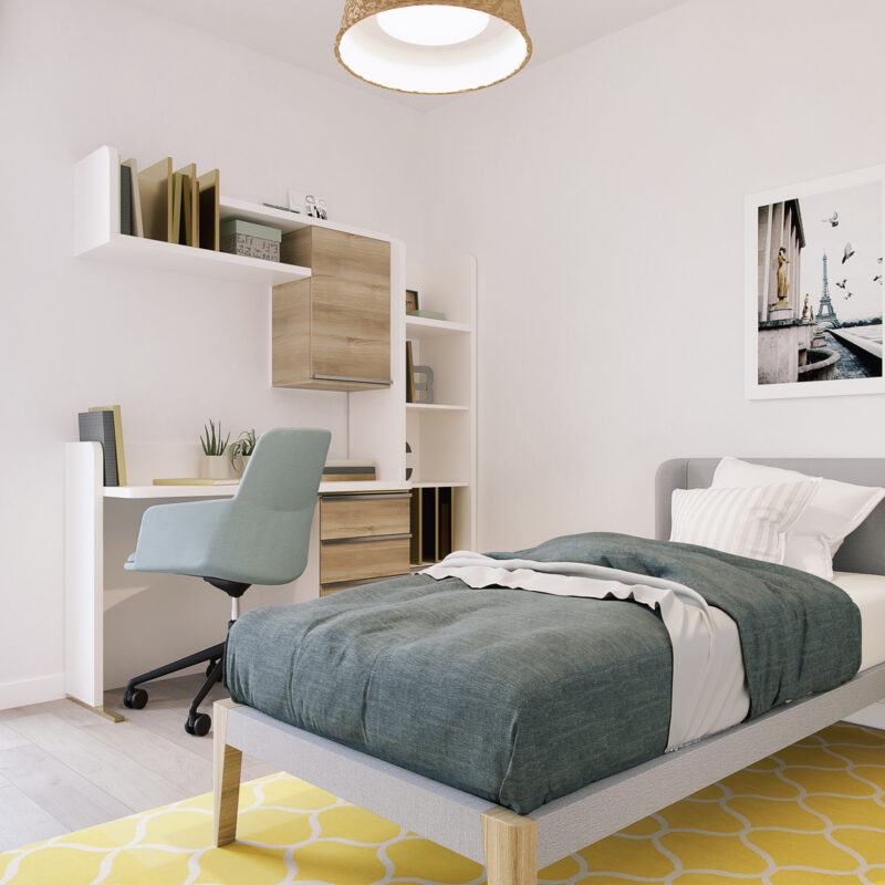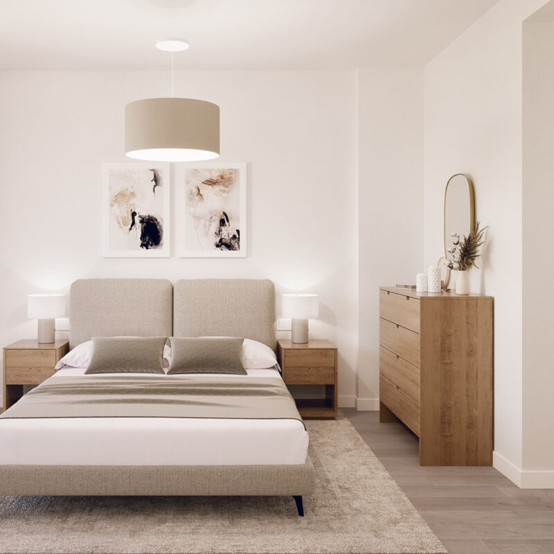 Descubre nuestros dormitorios diseñados para ser un refugio de paz y estilo. Cada espacio combina elegancia y funcionalidad, con grandes ventanales que inundan de luz natural, suelos de madera cálida y acabados modernos. Los tonos neutros invitan a la relajación, mientras que detalles únicos, como paredes acentuadas y armarios empotrados, añaden un toque de distinción. Imagina despertar en un lugar donde cada rincón ha sido pensado para tu comodidad y bienestar, convirtiendo tu hogar en el santuario que siempre has soñado. ¡Haz de tu dormitorio el corazón de tu nuevo hogar!