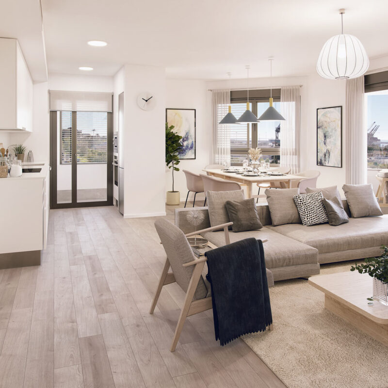 Descubre nuestros salones, espacios diseñados para ser el corazón de tu hogar. Con amplias distribuciones y ventanales que ofrecen vistas luminosas, cada salón combina comodidad y estilo. Los acabados elegantes y modernos, junto con suelos de alta calidad, crean un ambiente acogedor y sofisticado. Ideal para relajarte después de un largo día o para recibir a amigos y familiares, estos salones son el lugar perfecto para crear recuerdos. Imagina disfrutar de momentos inolvidables en un espacio que refleja tu personalidad y te invita a vivir al máximo. ¡Tu nuevo hogar te espera!