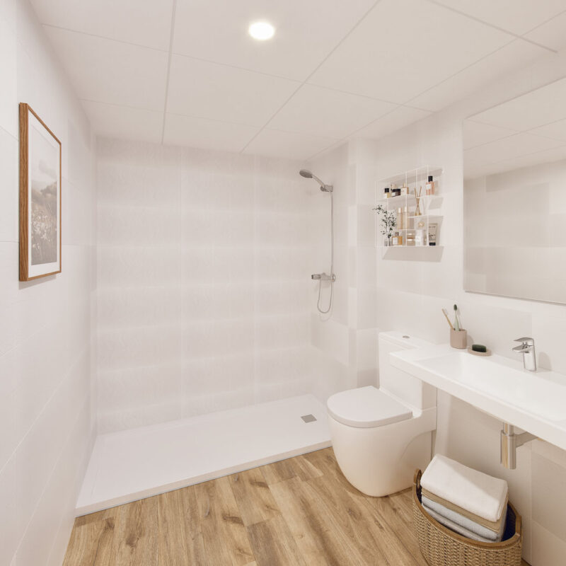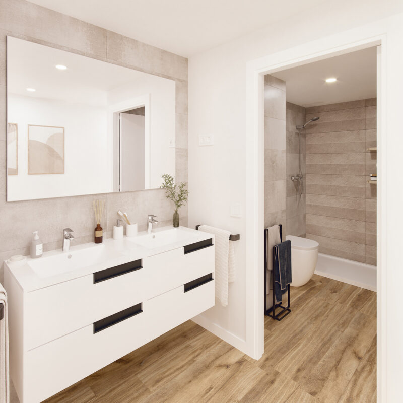 Descubre nuestros elegantes baños, diseñados para ofrecerte un oasis de confort y estilo. Con acabados modernos y materiales de alta calidad, cada baño combina funcionalidad y estética. Amplios espejos y duchas de lujo crean un ambiente relajante, ideal para tus momentos de bienestar. ¡Transforma tu rutina diaria en una experiencia de spa en casa!