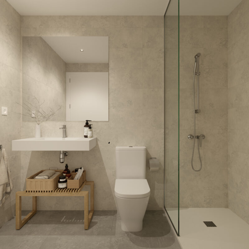 Descubre nuestros elegantes baños, diseñados para ofrecerte un oasis de confort y estilo. Con acabados modernos y materiales de alta calidad, cada baño combina funcionalidad y estética. Amplios espejos y duchas de lujo crean un ambiente relajante, ideal para tus momentos de bienestar. ¡Transforma tu rutina diaria en una experiencia de spa en casa!