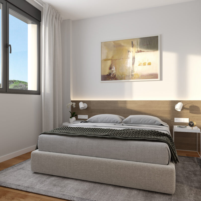Descubre nuestros dormitorios diseñados para ser un refugio de paz y estilo. Cada espacio combina elegancia y funcionalidad, con grandes ventanales que inundan de luz natural, suelos de madera cálida y acabados modernos. Los tonos neutros invitan a la relajación, mientras que detalles únicos, como paredes acentuadas y armarios empotrados, añaden un toque de distinción. Imagina despertar en un lugar donde cada rincón ha sido pensado para tu comodidad y bienestar, convirtiendo tu hogar en el santuario que siempre has soñado. ¡Haz de tu dormitorio el corazón de tu nuevo hogar!