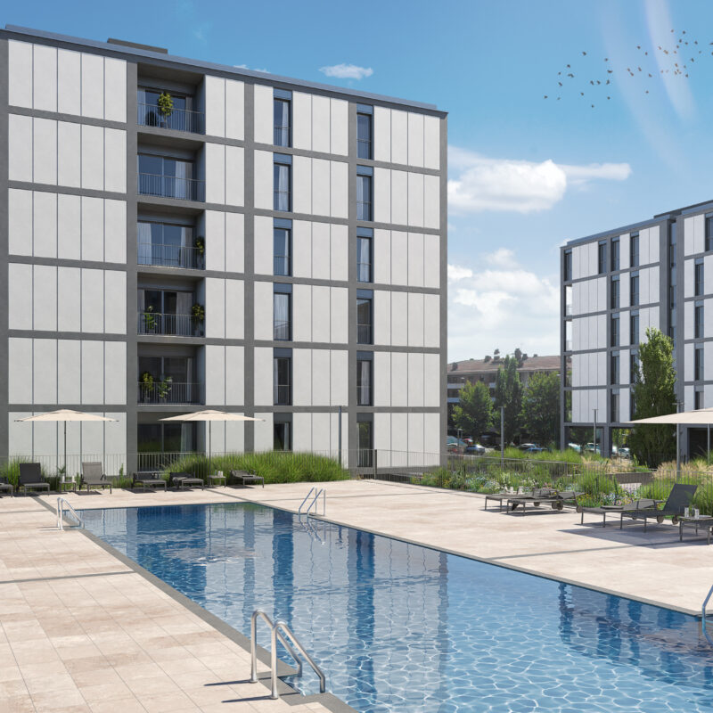 Su diseño arquitectónico original y elegante, integra en dos edificios un bloque lineal y una torre. Destacan los jardines comunitarios, la piscina y una zona de juegos para los más pequeños.