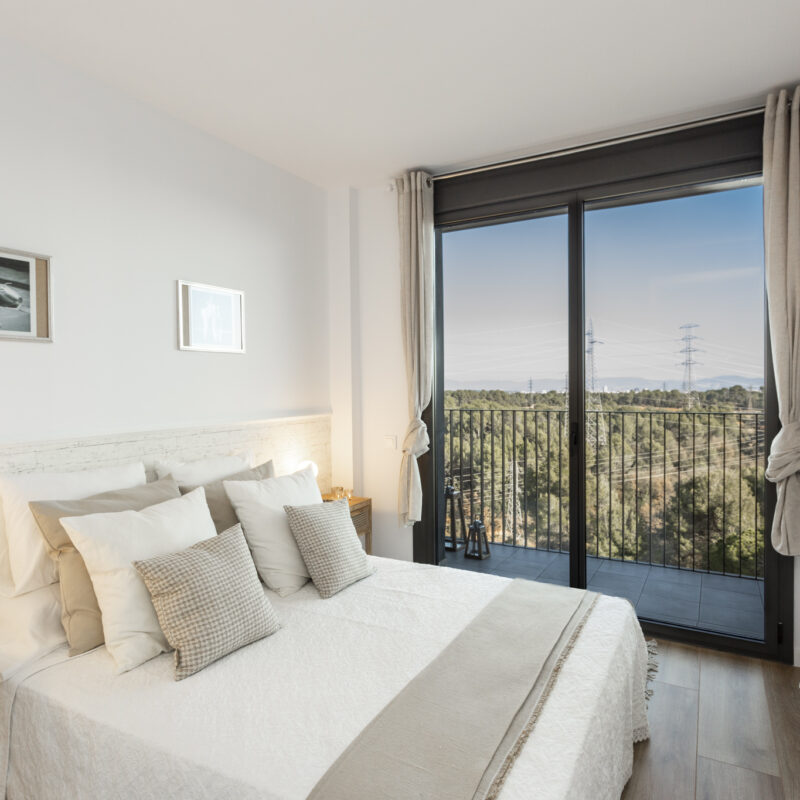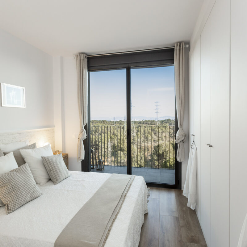 Descubre nuestros dormitorios diseñados para ser un refugio de paz y estilo. Cada espacio combina elegancia y funcionalidad, con grandes ventanales que inundan de luz natural, suelos de madera cálida y acabados modernos. Los tonos neutros invitan a la relajación, mientras que detalles únicos, como paredes acentuadas y armarios empotrados, añaden un toque de distinción. Imagina despertar en un lugar donde cada rincón ha sido pensado para tu comodidad y bienestar, convirtiendo tu hogar en el santuario que siempre has soñado. ¡Haz de tu dormitorio el corazón de tu nuevo hogar!