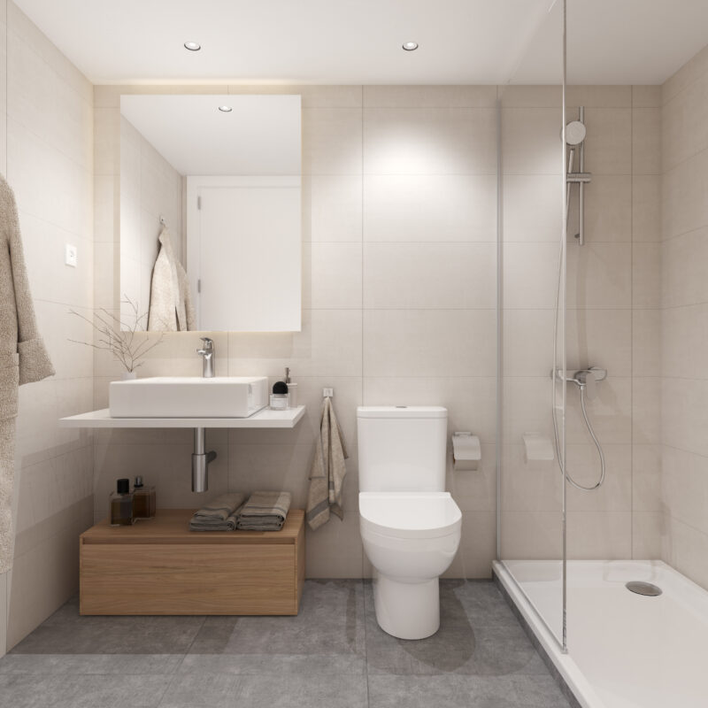 Descubre nuestros elegantes baños, diseñados para ofrecerte un oasis de confort y estilo. Con acabados modernos y materiales de alta calidad, cada baño combina funcionalidad y estética. Amplios espejos y duchas de lujo crean un ambiente relajante, ideal para tus momentos de bienestar. ¡Transforma tu rutina diaria en una experiencia de spa en casa!