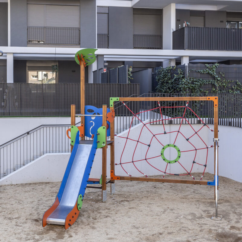 La zona de juegos infantiles es un espacio seguro y divertido, diseñado para que los más pequeños exploren y se diviertan. Equipado con juegos coloridos y áreas de recreo, es el lugar perfecto para fomentar la socialización y la creatividad. ¡Un entorno ideal para que los niños disfruten al máximo!