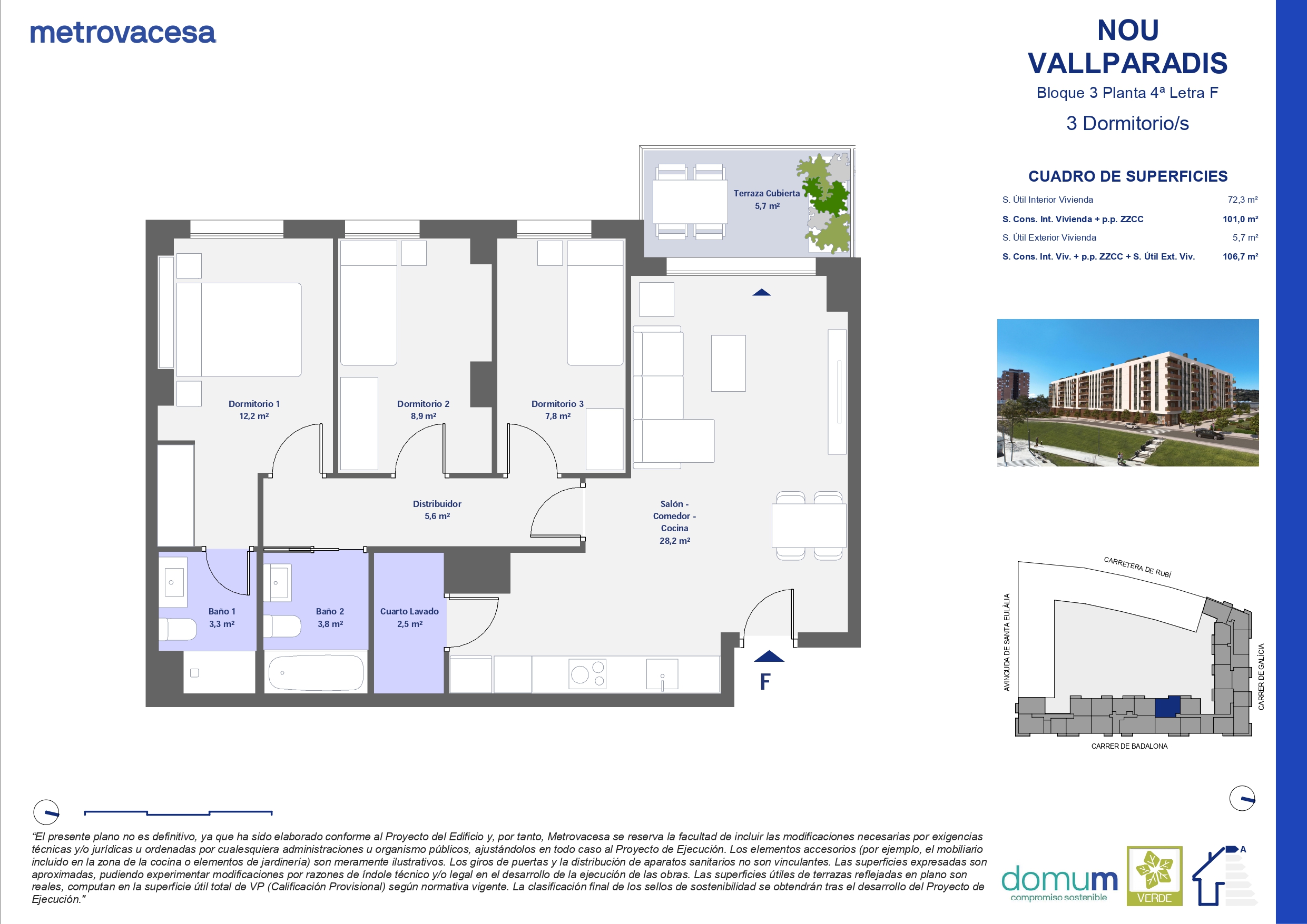 Nou Vallparadís es el nuevo proyecto de viviendas de Metrovacesa en Terrassa. Con una ubicación privilegiada, en el barrio Segle XX y en pleno Parc de Vallparadís, cuenta con un total de 111 viviendas de 1, 2, 3 y 4 dormitorios, una amplia zona comunitaria con zonas verdes, zona de juegos infantiles y piscina.