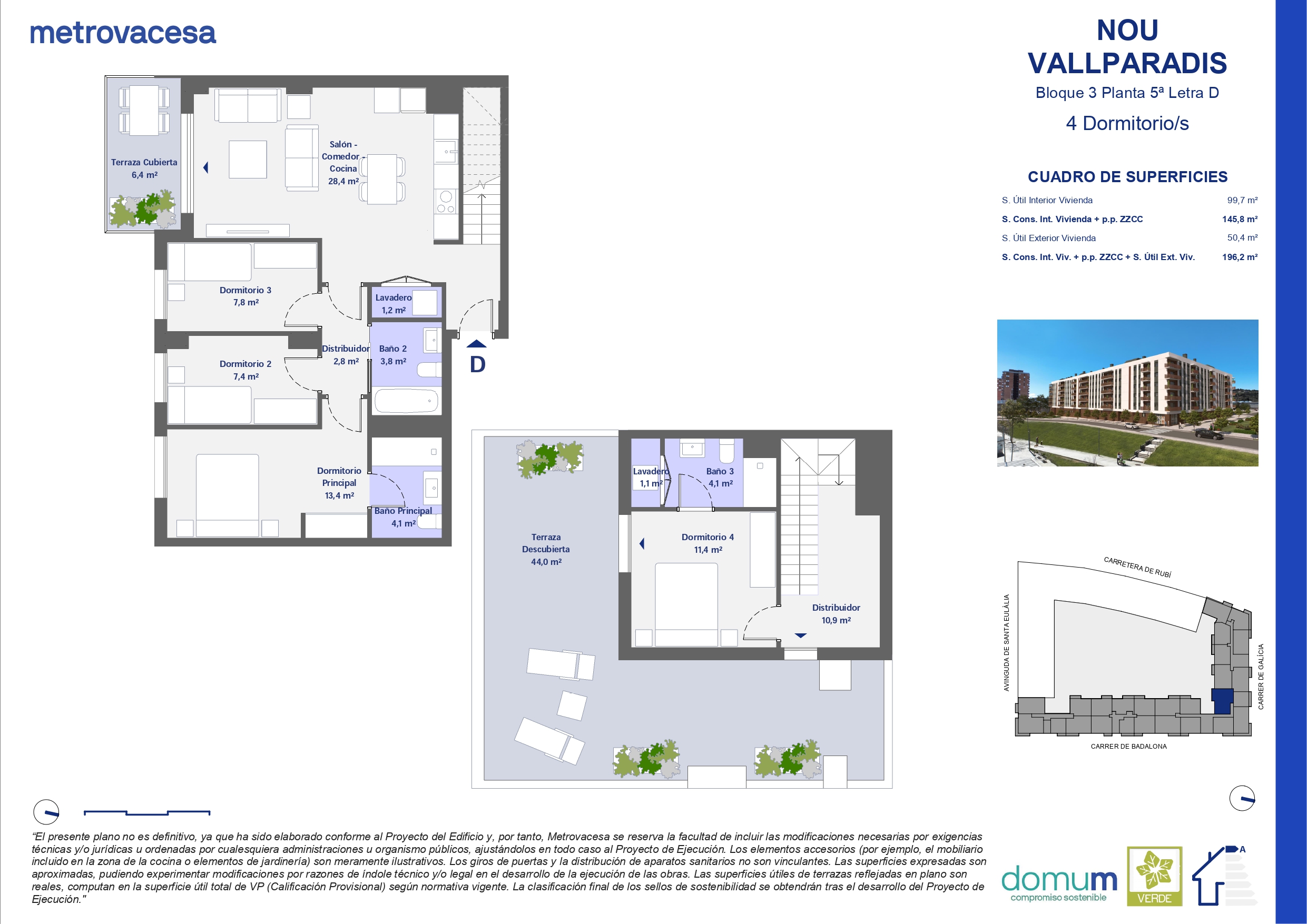 Con un total de 111 viviendas de 1, 2, 3 y 4 dormitorios, nuestra promoción ofrece una amplia variedad de opciones y tipologías de viviendas, para adaptarse a todos los estilos de vida y necesidades familiares. Desde acogedores apartamentos de 1 dormitorio hasta espaciosas viviendas de 4 dormitorios con espectaculares terrazas, todas ellas diseñadas pensando en cada detalle, con materiales innovadores y una conciencia de desarrollo sostenible que hace que Nou Vallparadís tenga una calificación energética AA.