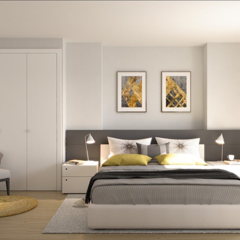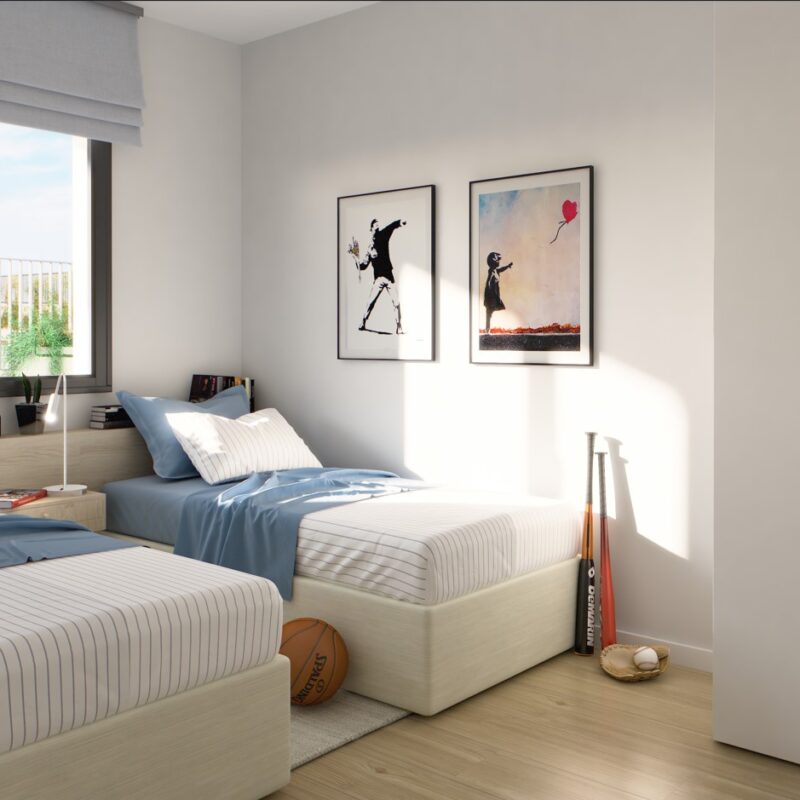 Descubre nuestros dormitorios diseñados para ser un refugio de paz y estilo. Cada espacio combina elegancia y funcionalidad, con grandes ventanales que inundan de luz natural, suelos de madera cálida y acabados modernos. Los tonos neutros invitan a la relajación, mientras que detalles únicos, como paredes acentuadas y armarios empotrados, añaden un toque de distinción. Imagina despertar en un lugar donde cada rincón ha sido pensado para tu comodidad y bienestar, convirtiendo tu hogar en el santuario que siempre has soñado. ¡Haz de tu dormitorio el corazón de tu nuevo hogar!