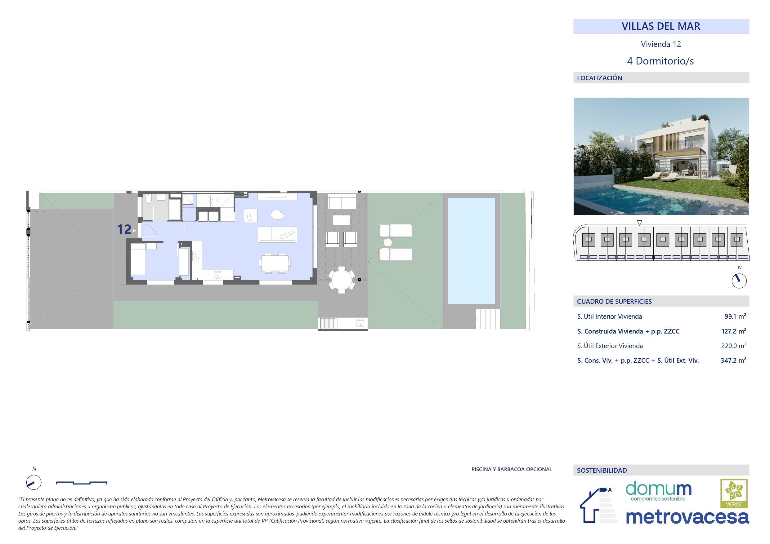 Descubre los encantadores exteriores de nuestras viviendas, diseñados para ofrecerte un oasis de tranquilidad y diversión. Jardines paisajísticos cuidadosamente cuidados, terrazas amplias y áreas de descanso invitan a disfrutar del aire libre en cualquier momento del día. Ideal para reuniones familiares, barbacoas con amigos o simplemente para relajarte bajo el sol, estos espacios están pensados para maximizar tu conexión con la naturaleza. Además, la seguridad y privacidad son prioridad, creando un entorno acogedor y sereno. Vive el placer de tener tu propio refugio al aire libre, donde cada día se convierte en una nueva oportunidad para disfrutar. ¡Tu hogar exterior te espera!
