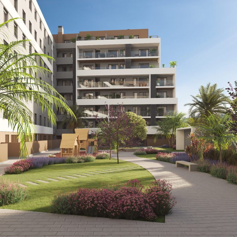 ALMA, en su fase 2, presenta 134 viviendas en tipologías de 1, 2, 3 y 4 dormitorios, todas equipadas con aparcamiento y trastero en el sótano. Espacios diseñados con un toque moderno, bajos con jardines y áticos donde disfrutar de vistas despejadas.