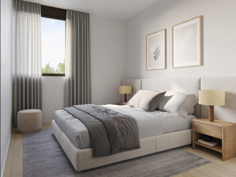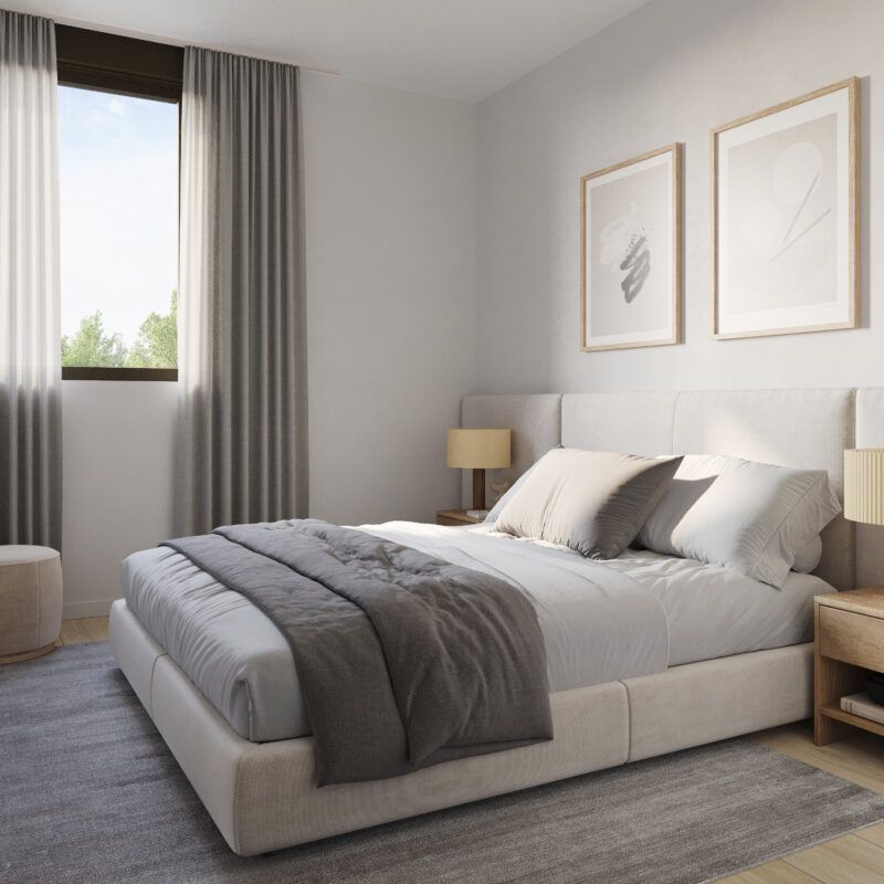 Descubre nuestros dormitorios diseñados para ser un refugio de paz y estilo. Cada espacio combina elegancia y funcionalidad, con grandes ventanales que inundan de luz natural, suelos de madera cálida y acabados modernos. Los tonos neutros invitan a la relajación, mientras que detalles únicos, como paredes acentuadas y armarios empotrados, añaden un toque de distinción. Imagina despertar en un lugar donde cada rincón ha sido pensado para tu comodidad y bienestar, convirtiendo tu hogar en el santuario que siempre has soñado. ¡Haz de tu dormitorio el corazón de tu nuevo hogar!