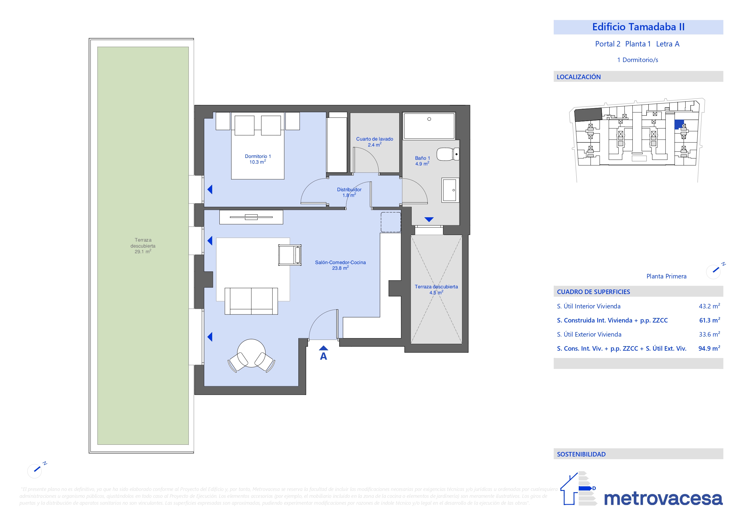 * El ahorro económico y energético mostrado en esta simulación es puramente informativo, por lo tanto, Metrovacesa no tiene ninguna responsabilidad ni obligación sobre dichos resultados. El cálculo se ha hecho basado en los datos incluidos en el documento "Calificación de la eficiencia energética de los edificios" versión 1.1 de Noviembre de 2015, publicado por el IDAE. Ministerio de Industria, Energía y Turismo.