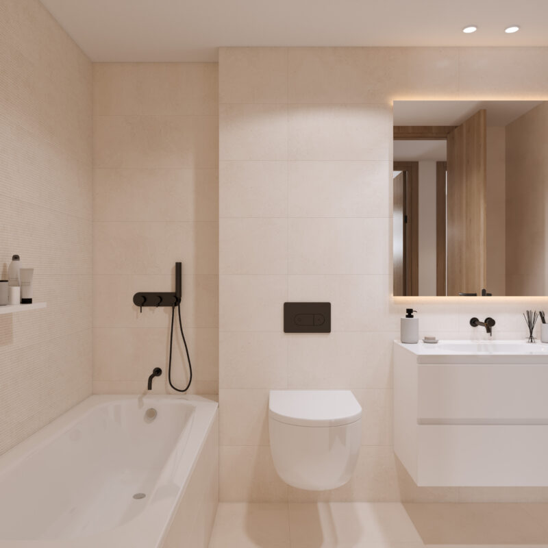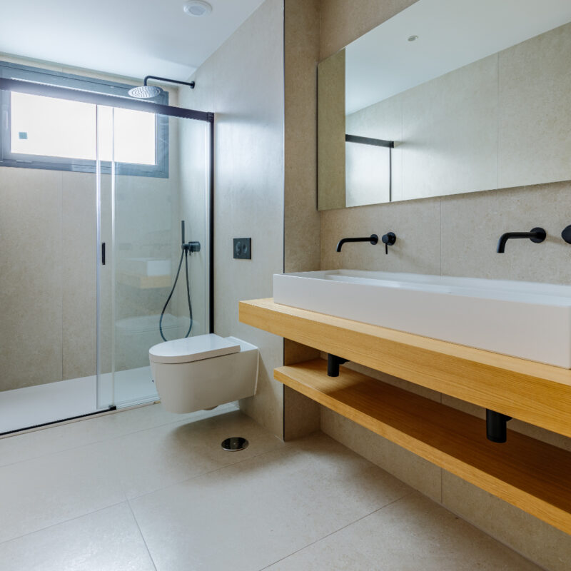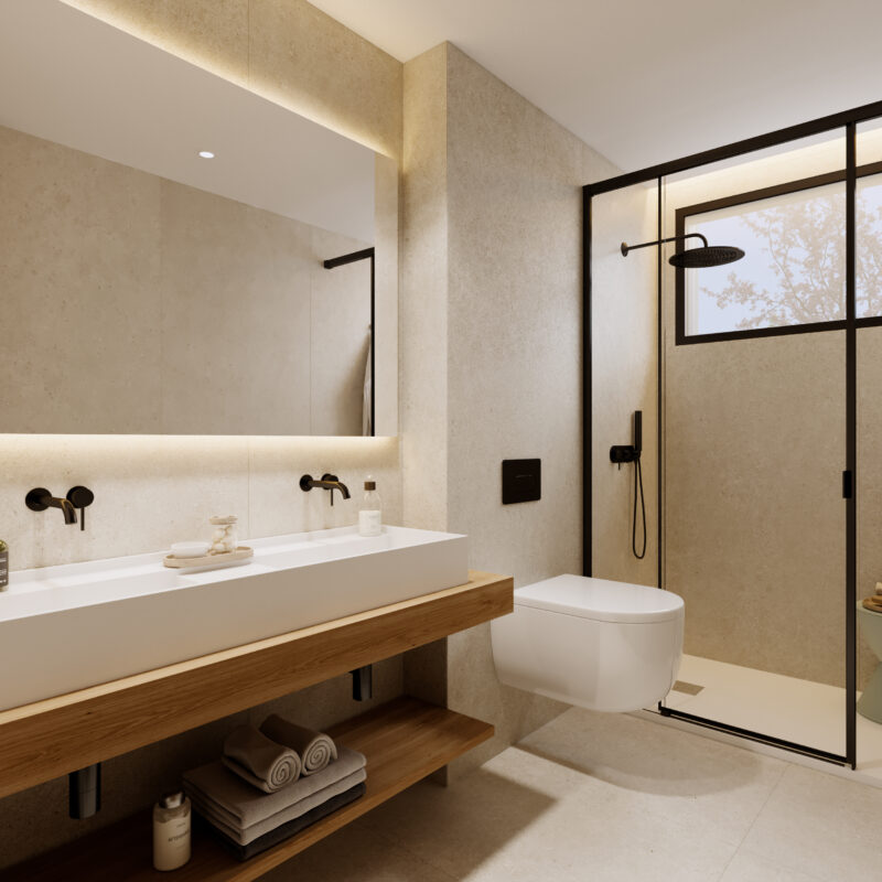 Descubre nuestros elegantes baños, diseñados para ofrecerte un oasis de confort y estilo. Con acabados modernos y materiales de alta calidad, cada baño combina funcionalidad y estética. Amplios espejos y duchas de lujo crean un ambiente relajante, ideal para tus momentos de bienestar. ¡Transforma tu rutina diaria en una experiencia de spa en casa!