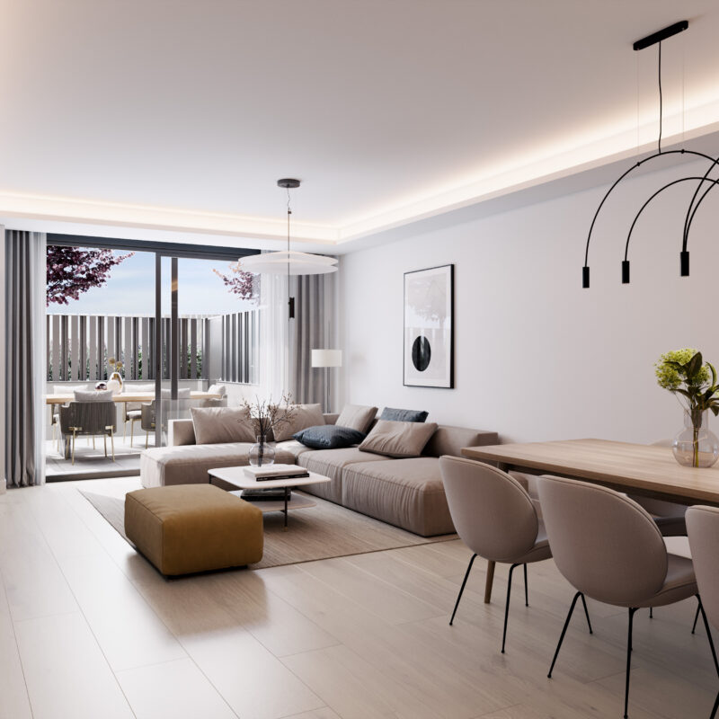 Descubre nuestros salones, espacios diseñados para ser el corazón de tu hogar. Con amplias distribuciones y ventanales que ofrecen vistas luminosas, cada salón combina comodidad y estilo. Los acabados elegantes y modernos, junto con suelos de alta calidad, crean un ambiente acogedor y sofisticado. Ideal para relajarte después de un largo día o para recibir a amigos y familiares, estos salones son el lugar perfecto para crear recuerdos. Imagina disfrutar de momentos inolvidables en un espacio que refleja tu personalidad y te invita a vivir al máximo. ¡Tu nuevo hogar te espera!