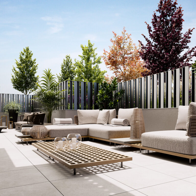 Disfruta de nuestras amplias terrazas, perfectas para relajarte y disfrutar del aire libre. Equipadas con cómodos espacios de descanso y vistas panorámicas, son ideales para desayunos soleados o cenas al atardecer. Este rincón privado se convierte en el escenario perfecto para momentos inolvidables con amigos y familiares. ¡Haz de tu terraza el refugio que siempre has deseado!