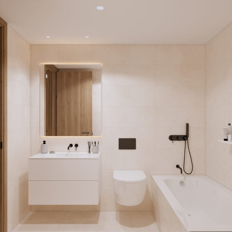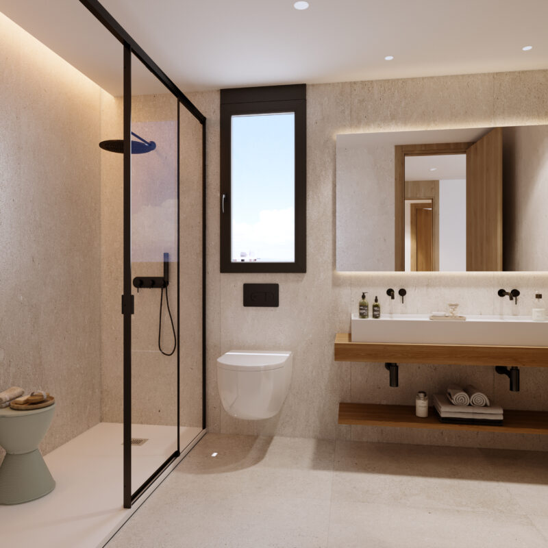 Descubre nuestros elegantes baños, diseñados para ofrecerte un oasis de confort y estilo. Con acabados modernos y materiales de alta calidad, cada baño combina funcionalidad y estética. Amplios espejos y duchas de lujo crean un ambiente relajante, ideal para tus momentos de bienestar. ¡Transforma tu rutina diaria en una experiencia de spa en casa!