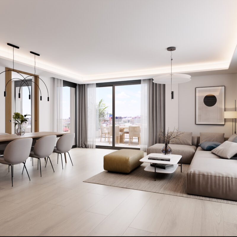 Descubre nuestros salones, espacios diseñados para ser el corazón de tu hogar. Con amplias distribuciones y ventanales que ofrecen vistas luminosas, cada salón combina comodidad y estilo. Los acabados elegantes y modernos, junto con suelos de alta calidad, crean un ambiente acogedor y sofisticado. Ideal para relajarte después de un largo día o para recibir a amigos y familiares, estos salones son el lugar perfecto para crear recuerdos. Imagina disfrutar de momentos inolvidables en un espacio que refleja tu personalidad y te invita a vivir al máximo. ¡Tu nuevo hogar te espera!