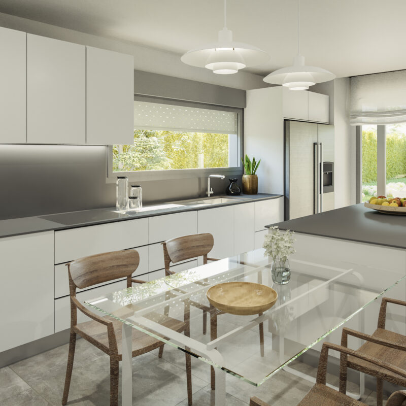 Bienvenido a nuestras cocinas, donde la funcionalidad se encuentra con el diseño contemporáneo. Cada cocina ha sido cuidadosamente planificada para ofrecer un espacio acogedor y eficiente, perfecto para cocinar y compartir momentos inolvidables. Equipadas con electrodomésticos de última generación, amplias encimeras de granito y elegantes gabinetes, son ideales tanto para chefs experimentados como para quienes disfrutan de la cocina ocasional. La iluminación cálida y los detalles en acero inoxidable añaden un toque de modernidad, creando un ambiente inspirador. Convierte cada comida en una celebración en la cocina de tu nuevo hogar. ¡Déjate seducir por este espacio donde la creatividad florece!
