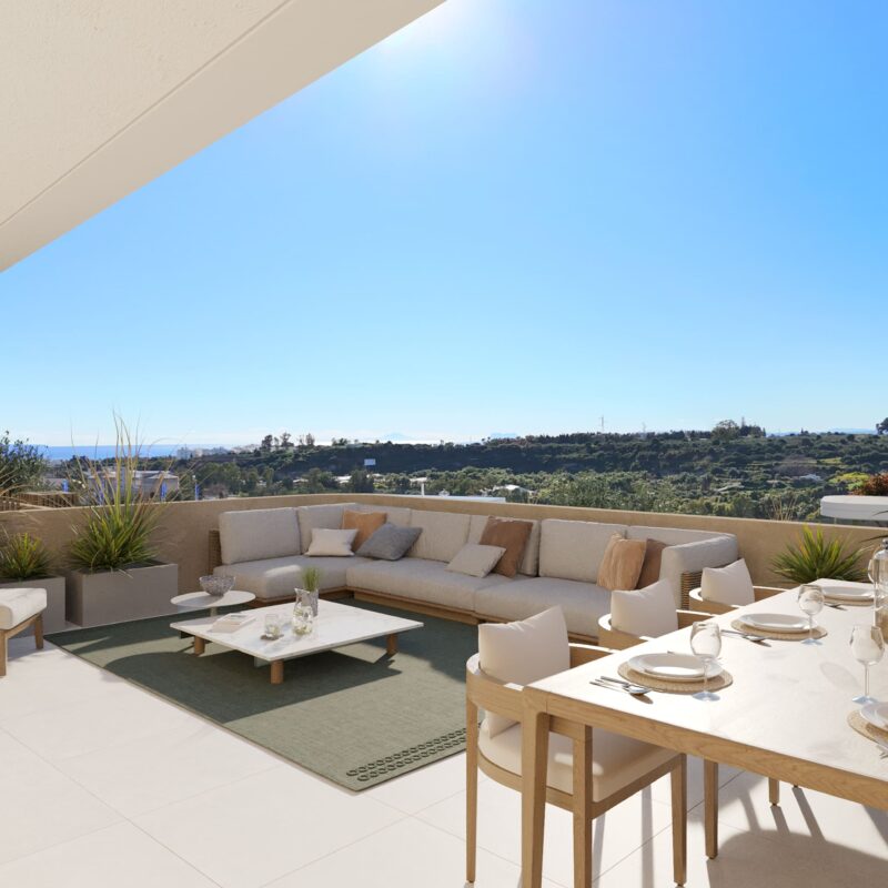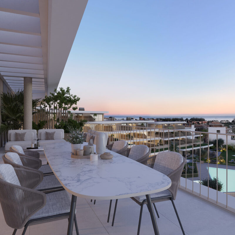 Disfruta de nuestras amplias terrazas, perfectas para relajarte y disfrutar del aire libre. Equipadas con cómodos espacios de descanso y vistas panorámicas, son ideales para desayunos soleados o cenas al atardecer. Este rincón privado se convierte en el escenario perfecto para momentos inolvidables con amigos y familiares. ¡Haz de tu terraza el refugio que siempre has deseado!