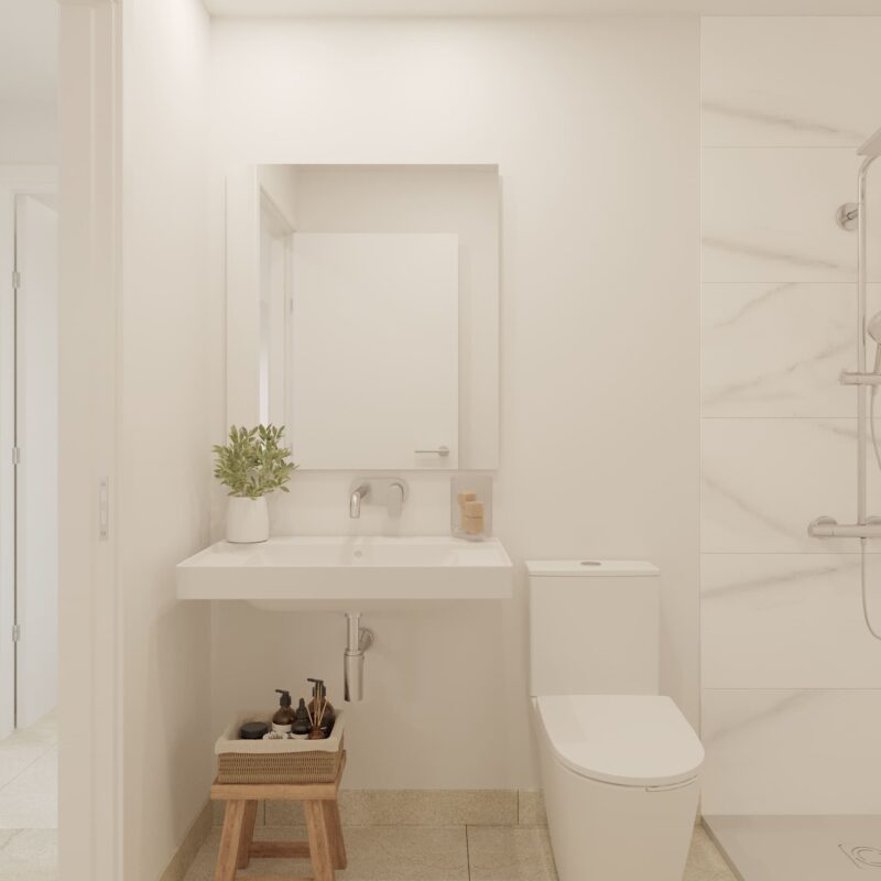 Descubre nuestros elegantes baños, diseñados para ofrecerte un oasis de confort y estilo. Con acabados modernos y materiales de alta calidad, cada baño combina funcionalidad y estética. Amplios espejos y duchas de lujo crean un ambiente relajante, ideal para tus momentos de bienestar. ¡Transforma tu rutina diaria en una experiencia de spa en casa!