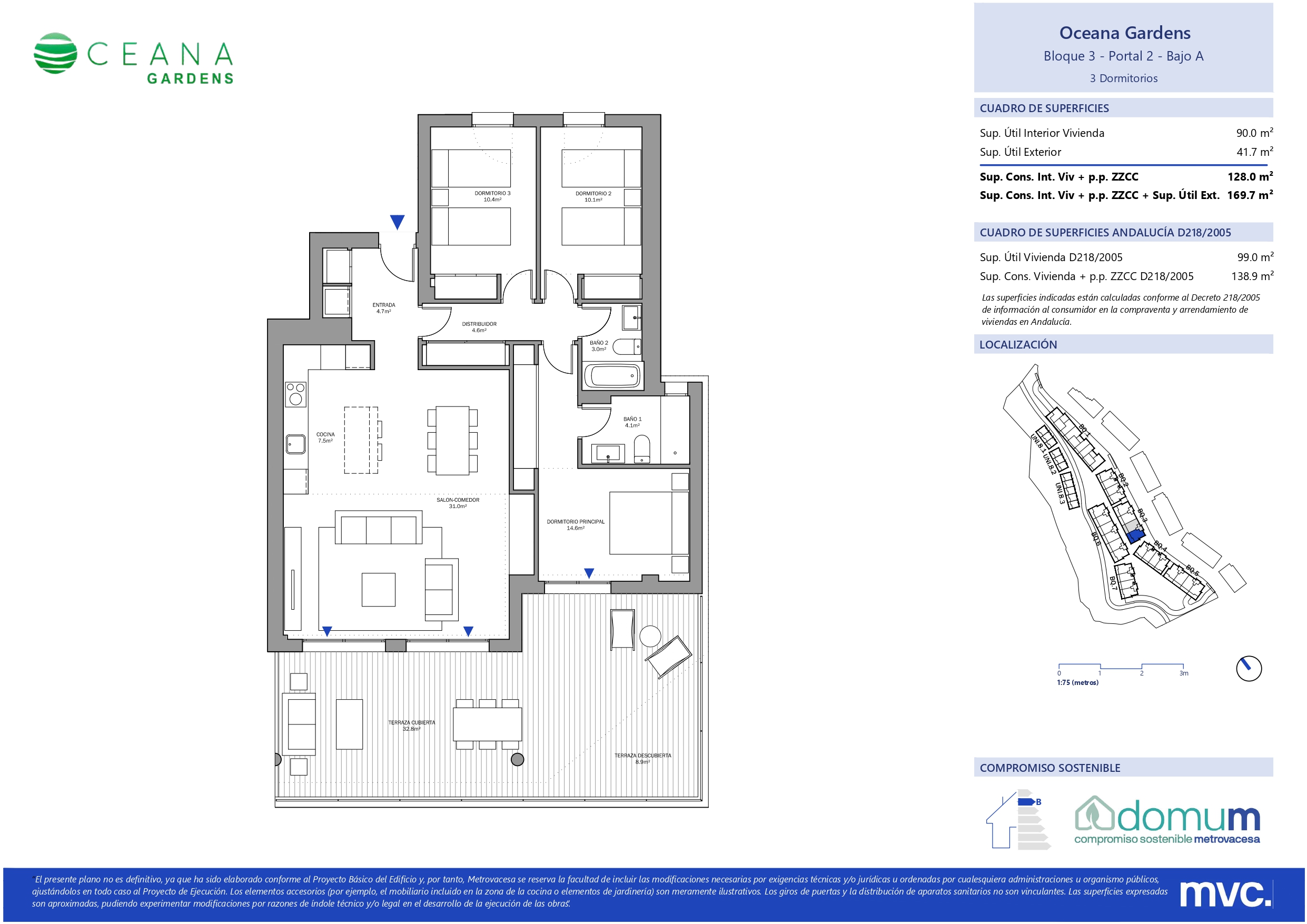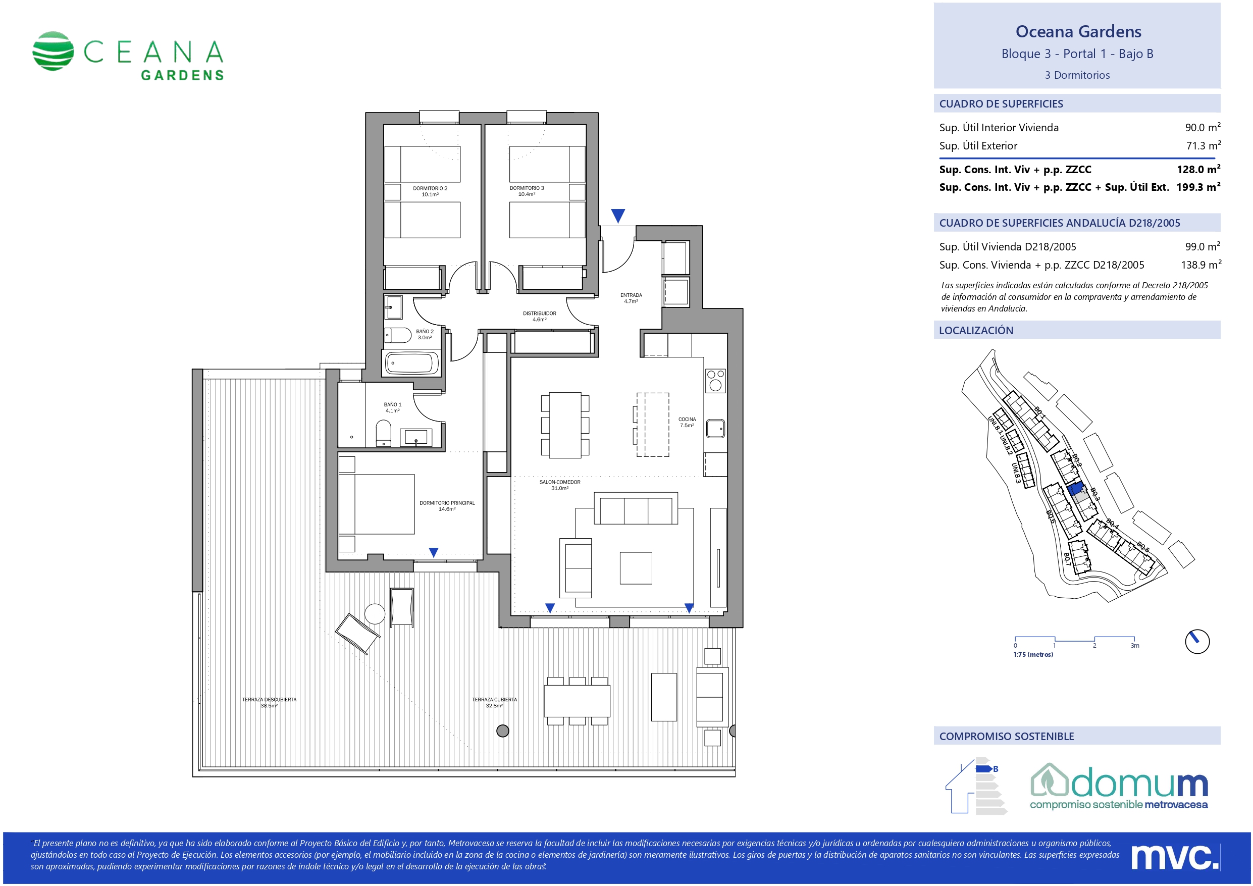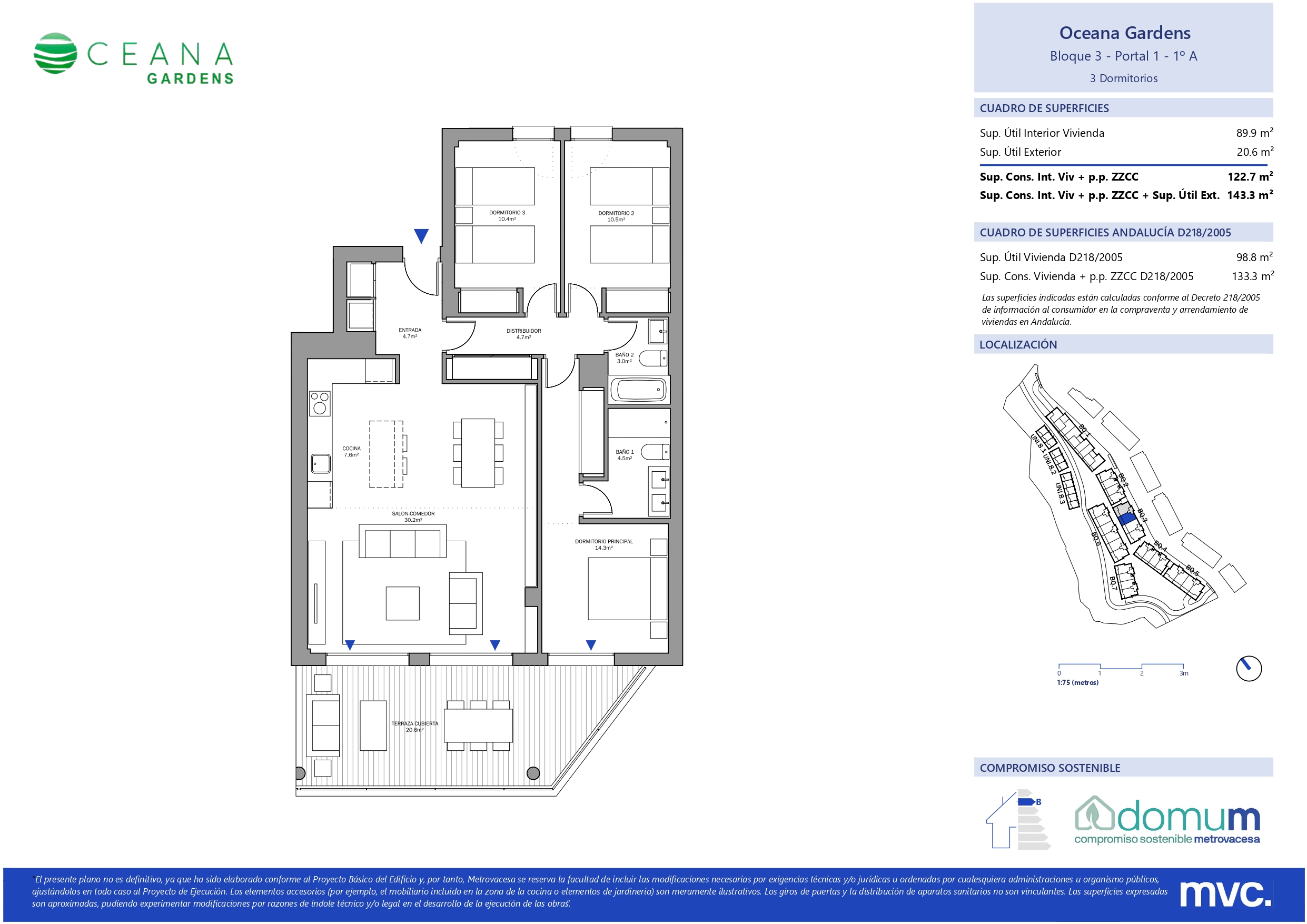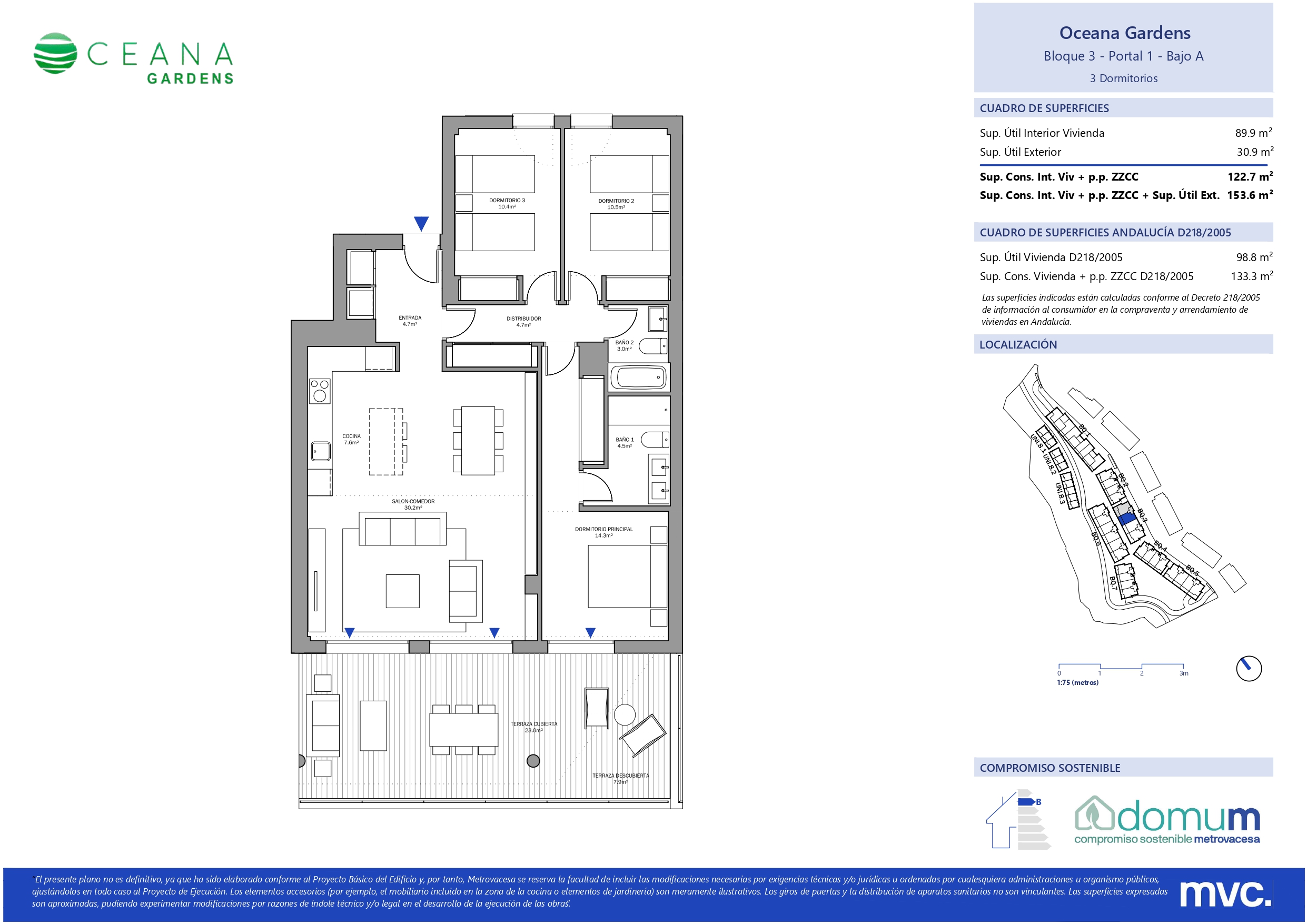 Las viviendas disfrutan de amplias terrazas con orientación suroeste. Esta promoción conjuga los acabados de calidad, amplitud en espacios interiores y exteriores y la sostenibilidad, al contar con el sello DOMUM. Oceana Gardens II ha sido diseñada pensando en crear un nuevo estilo de vida.