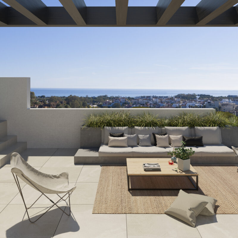 Disfruta de nuestras amplias terrazas, perfectas para relajarte y disfrutar del aire libre. Equipadas con cómodos espacios de descanso y vistas panorámicas, son ideales para desayunos soleados o cenas al atardecer. Este rincón privado se convierte en el escenario perfecto para momentos inolvidables con amigos y familiares. ¡Haz de tu terraza el refugio que siempre has deseado!