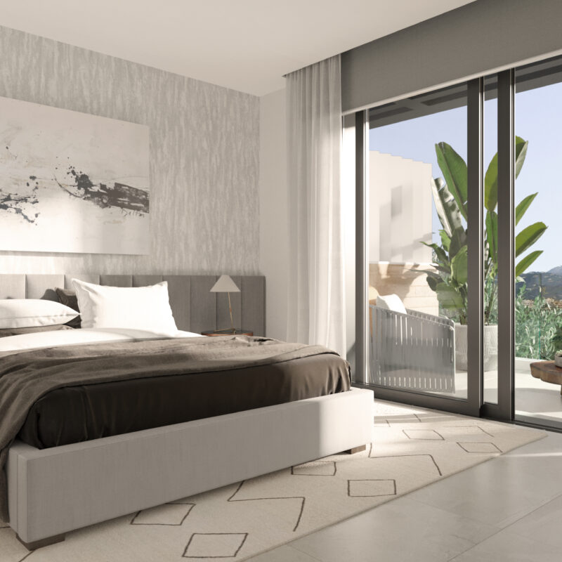 Descubre nuestros dormitorios diseñados para ser un refugio de paz y estilo. Cada espacio combina elegancia y funcionalidad, con grandes ventanales que inundan de luz natural, suelos de madera cálida y acabados modernos. Los tonos neutros invitan a la relajación, mientras que detalles únicos, como paredes acentuadas y armarios empotrados, añaden un toque de distinción. Imagina despertar en un lugar donde cada rincón ha sido pensado para tu comodidad y bienestar, convirtiendo tu hogar en el santuario que siempre has soñado. ¡Haz de tu dormitorio el corazón de tu nuevo hogar!