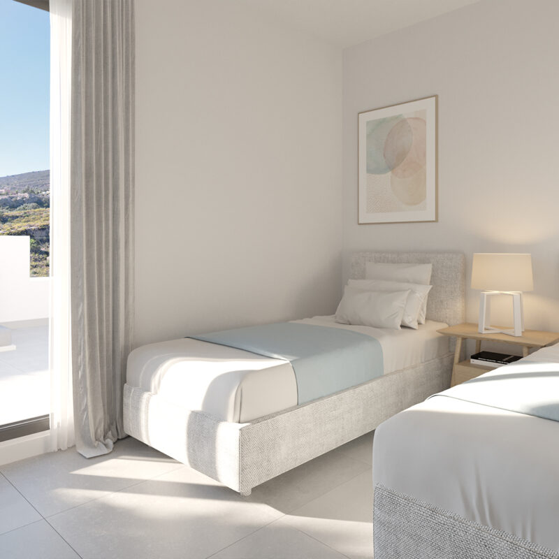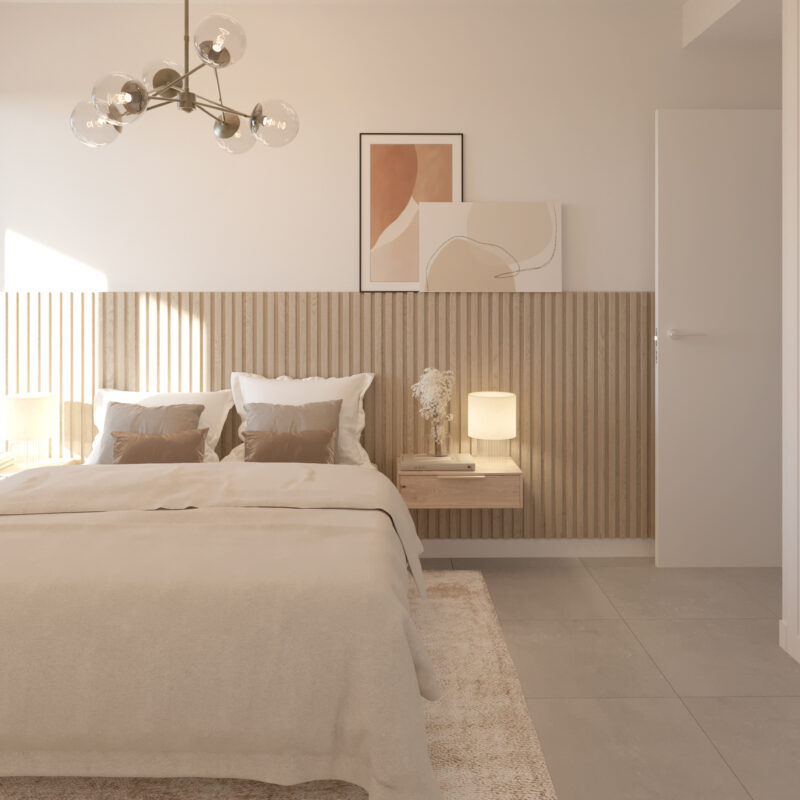 Descubre nuestros dormitorios diseñados para ser un refugio de paz y estilo. Cada espacio combina elegancia y funcionalidad, con grandes ventanales que inundan de luz natural, suelos de madera cálida y acabados modernos. Los tonos neutros invitan a la relajación, mientras que detalles únicos, como paredes acentuadas y armarios empotrados, añaden un toque de distinción. Imagina despertar en un lugar donde cada rincón ha sido pensado para tu comodidad y bienestar, convirtiendo tu hogar en el santuario que siempre has soñado. ¡Haz de tu dormitorio el corazón de tu nuevo hogar!