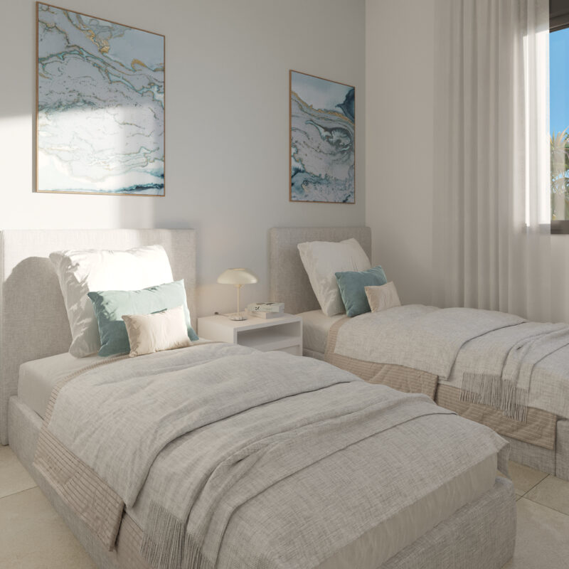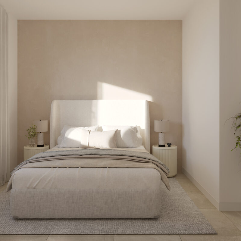 Descubre nuestros dormitorios diseñados para ser un refugio de paz y estilo. Cada espacio combina elegancia y funcionalidad, con grandes ventanales que inundan de luz natural, suelos de madera cálida y acabados modernos. Los tonos neutros invitan a la relajación, mientras que detalles únicos, como paredes acentuadas y armarios empotrados, añaden un toque de distinción. Imagina despertar en un lugar donde cada rincón ha sido pensado para tu comodidad y bienestar, convirtiendo tu hogar en el santuario que siempre has soñado. ¡Haz de tu dormitorio el corazón de tu nuevo hogar!