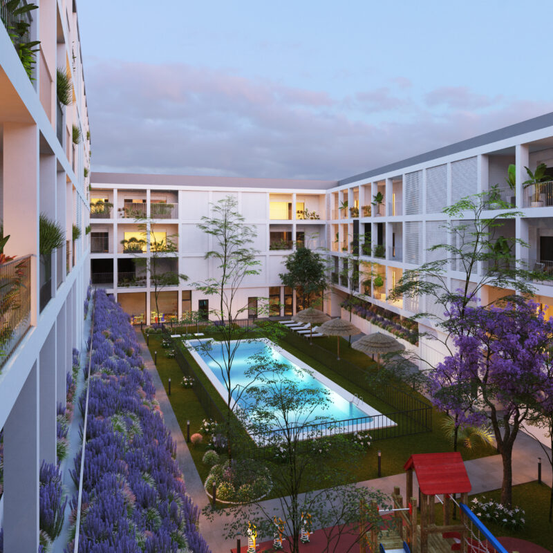Residencial de 65 viviendas plurifamiliares de 2, 3 y 4 dormitorios con garajes y trasteros y locales comerciales