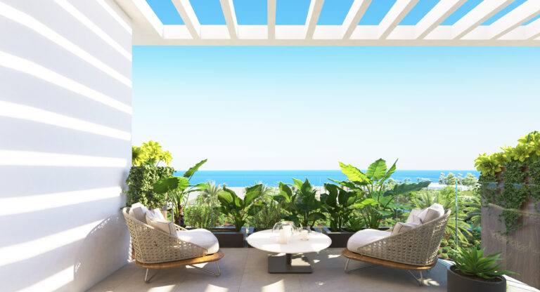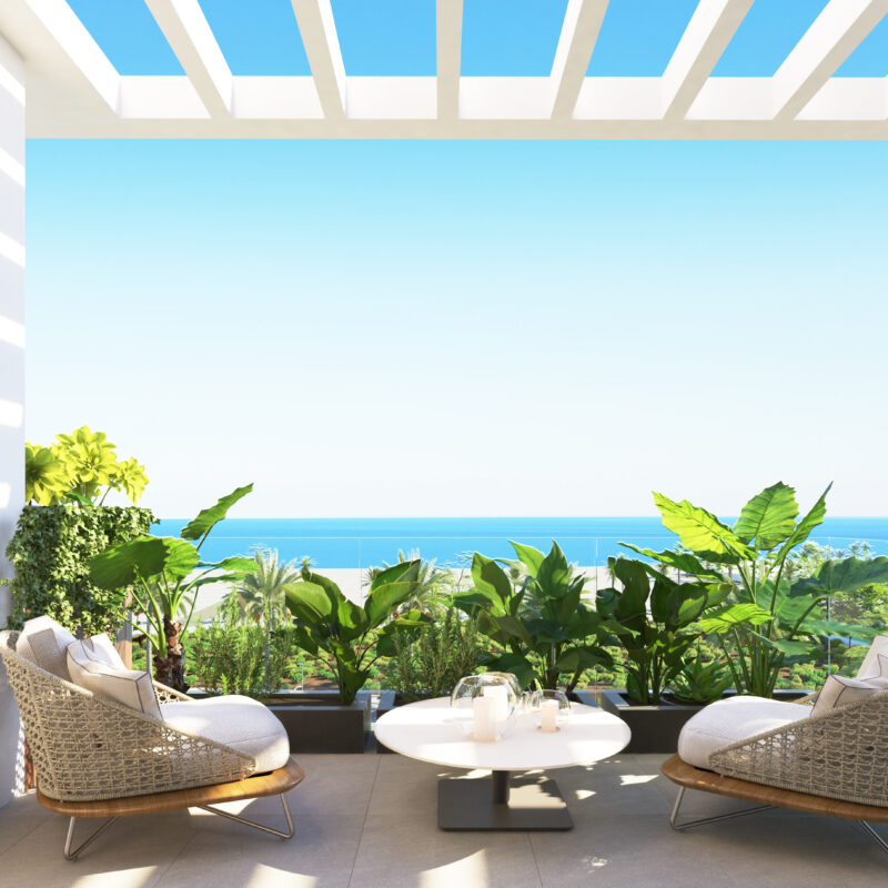 Disfruta de nuestras amplias terrazas, perfectas para relajarte y disfrutar del aire libre. Equipadas con cómodos espacios de descanso y vistas panorámicas, son ideales para desayunos soleados o cenas al atardecer. Este rincón privado se convierte en el escenario perfecto para momentos inolvidables con amigos y familiares. ¡Haz de tu terraza el refugio que siempre has deseado!