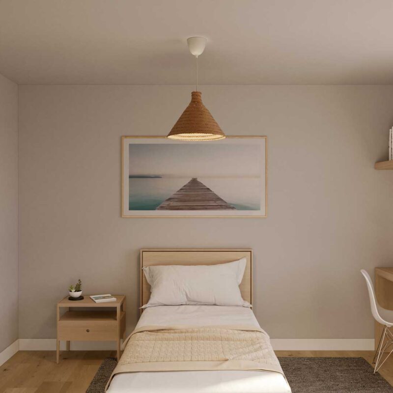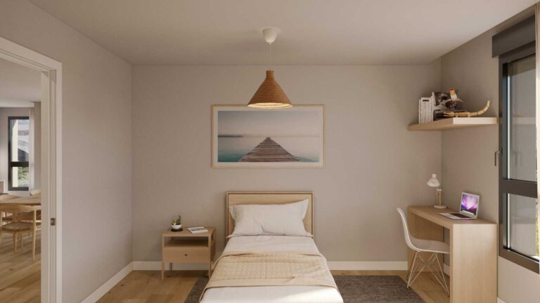 Descubre nuestros dormitorios diseñados para ser un refugio de paz y estilo. Cada espacio combina elegancia y funcionalidad, con grandes ventanales que inundan de luz natural, suelos de madera cálida y acabados modernos. Los tonos neutros invitan a la relajación, mientras que detalles únicos, como paredes acentuadas y armarios empotrados, añaden un toque de distinción. Imagina despertar en un lugar donde cada rincón ha sido pensado para tu comodidad y bienestar, convirtiendo tu hogar en el santuario que siempre has soñado. ¡Haz de tu dormitorio el corazón de tu nuevo hogar!