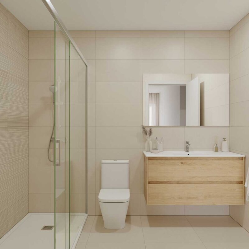 Descubre nuestros elegantes baños, diseñados para ofrecerte un oasis de confort y estilo. Con acabados modernos y materiales de alta calidad, cada baño combina funcionalidad y estética. Amplios espejos y duchas de lujo crean un ambiente relajante, ideal para tus momentos de bienestar. ¡Transforma tu rutina diaria en una experiencia de spa en casa!