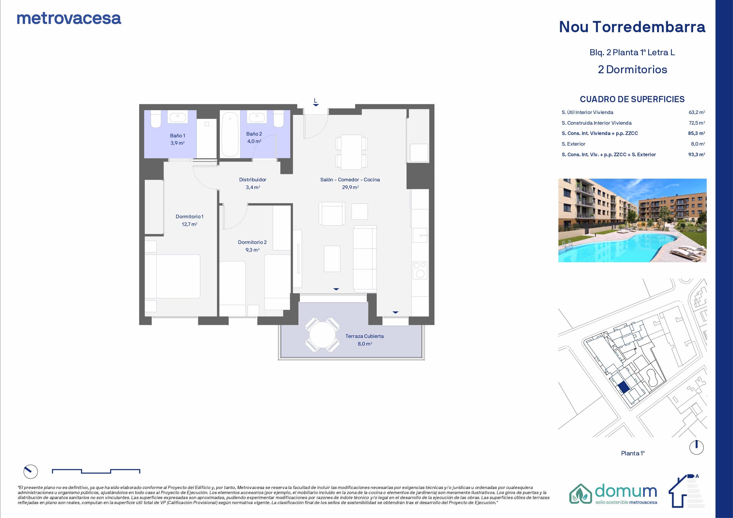 | 1 | 2 | 2 | 93.3 * | 8 | Ver plano | 239.000 € ** |