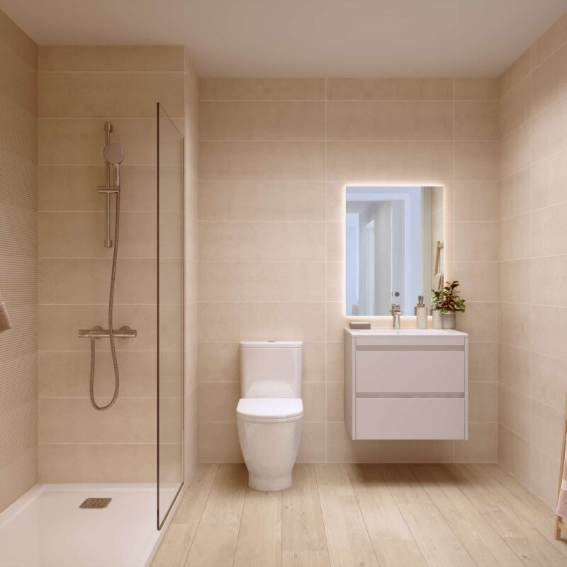 Descubre nuestros elegantes baños, diseñados para ofrecerte un oasis de confort y estilo. Con acabados modernos y materiales de alta calidad, cada baño combina funcionalidad y estética. Amplios espejos y duchas de lujo crean un ambiente relajante, ideal para tus momentos de bienestar. ¡Transforma tu rutina diaria en una experiencia de spa en casa!