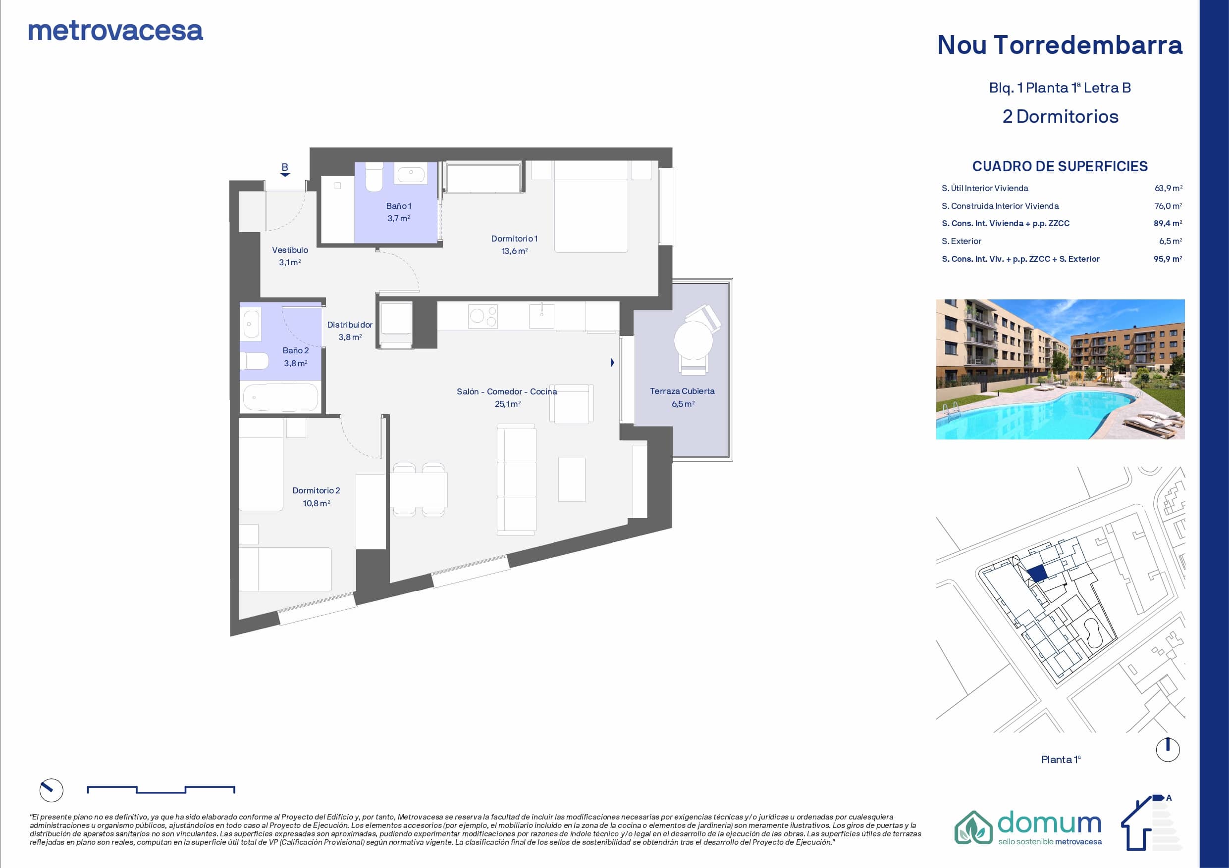 | 1 | 2 | 2 | 95.9 * | 6.5 | Ver plano | 250.500 € ** |