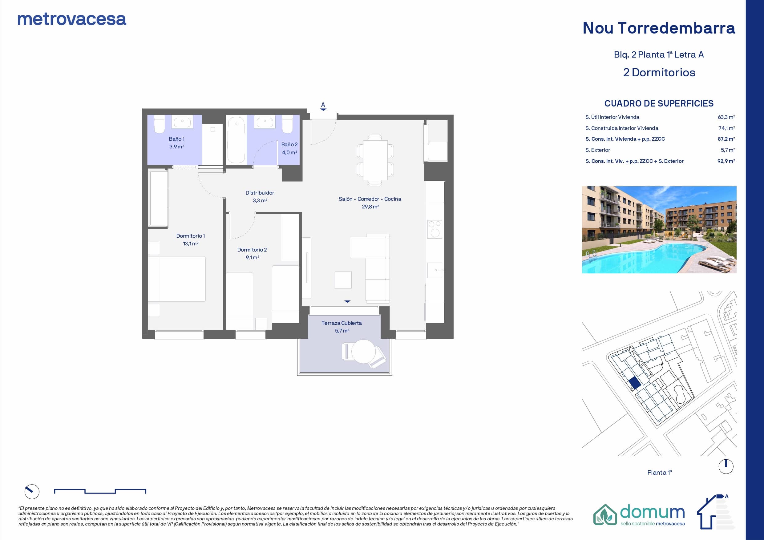 | 1 | 2 | 2 | 93.1 * | 6.1 | Ver plano | 241.000 € ** |