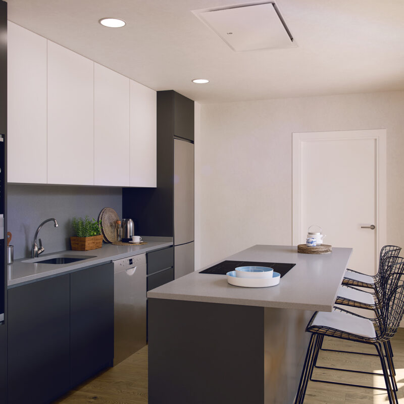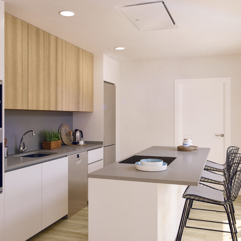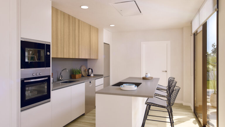 Bienvenido a nuestras cocinas, donde la funcionalidad se encuentra con el diseño contemporáneo. Cada cocina ha sido cuidadosamente planificada para ofrecer un espacio acogedor y eficiente, perfecto para cocinar y compartir momentos inolvidables. Equipadas con electrodomésticos de última generación, amplias encimeras de granito y elegantes gabinetes, son ideales tanto para chefs experimentados como para quienes disfrutan de la cocina ocasional. La iluminación cálida y los detalles en acero inoxidable añaden un toque de modernidad, creando un ambiente inspirador. Convierte cada comida en una celebración en la cocina de tu nuevo hogar. ¡Déjate seducir por este espacio donde la creatividad florece!