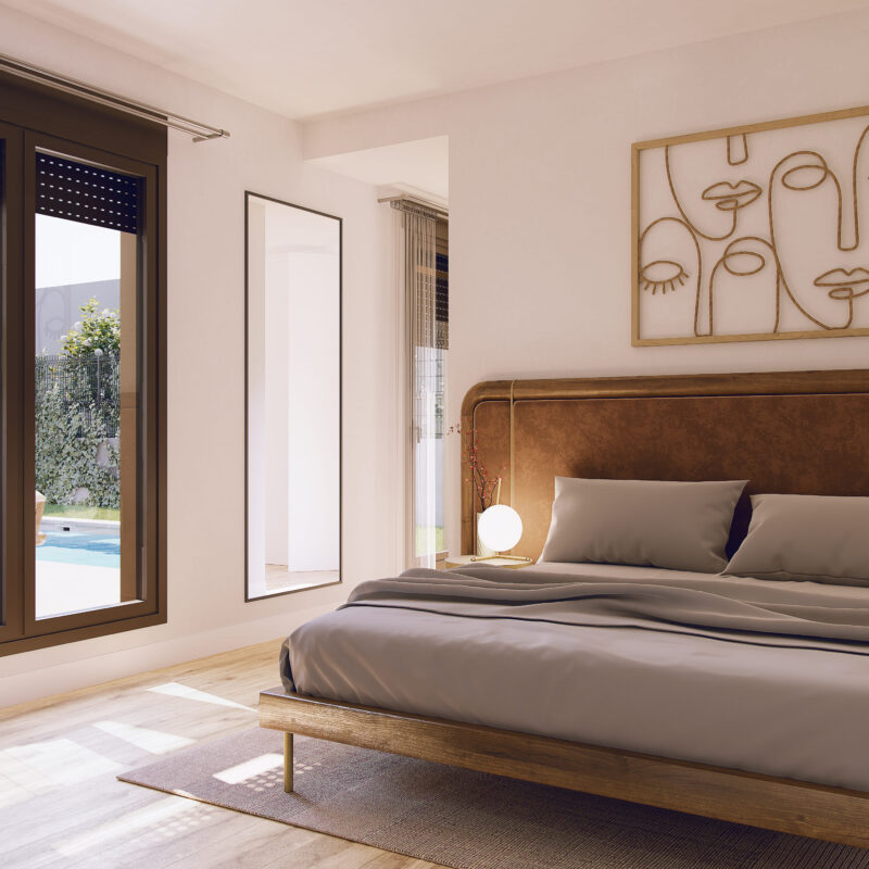 Descubre nuestros dormitorios diseñados para ser un refugio de paz y estilo. Cada espacio combina elegancia y funcionalidad, con grandes ventanales que inundan de luz natural, suelos de madera cálida y acabados modernos. Los tonos neutros invitan a la relajación, mientras que detalles únicos, como paredes acentuadas y armarios empotrados, añaden un toque de distinción. Imagina despertar en un lugar donde cada rincón ha sido pensado para tu comodidad y bienestar, convirtiendo tu hogar en el santuario que siempre has soñado. ¡Haz de tu dormitorio el corazón de tu nuevo hogar!