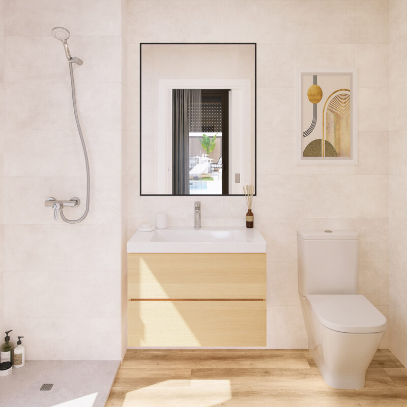 Descubre nuestros elegantes baños, diseñados para ofrecerte un oasis de confort y estilo. Con acabados modernos y materiales de alta calidad, cada baño combina funcionalidad y estética. Amplios espejos y duchas de lujo crean un ambiente relajante, ideal para tus momentos de bienestar. ¡Transforma tu rutina diaria en una experiencia de spa en casa!