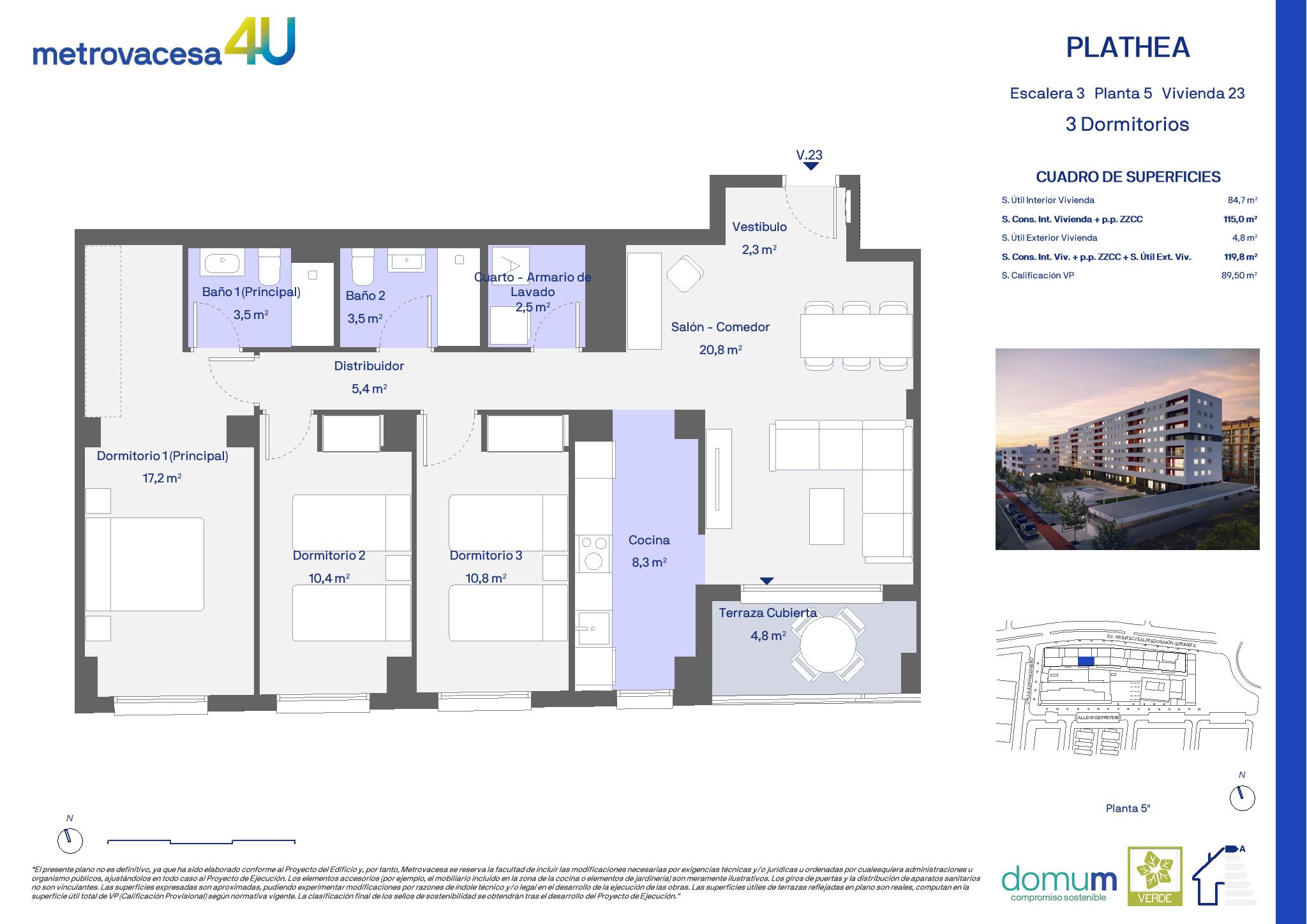 | 5 | 3 | 2 | 119.8 * | 4.8 | Ver plano | 255.200 € *** |