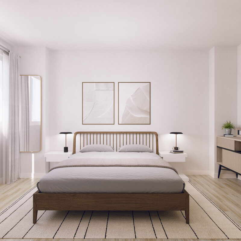 Descubre nuestros dormitorios diseñados para ser un refugio de paz y estilo. Cada espacio combina elegancia y funcionalidad, con grandes ventanales que inundan de luz natural, suelos de madera cálida y acabados modernos. Los tonos neutros invitan a la relajación, mientras que detalles únicos, como paredes acentuadas y armarios empotrados, añaden un toque de distinción. Imagina despertar en un lugar donde cada rincón ha sido pensado para tu comodidad y bienestar, convirtiendo tu hogar en el santuario que siempre has soñado. ¡Haz de tu dormitorio el corazón de tu nuevo hogar!