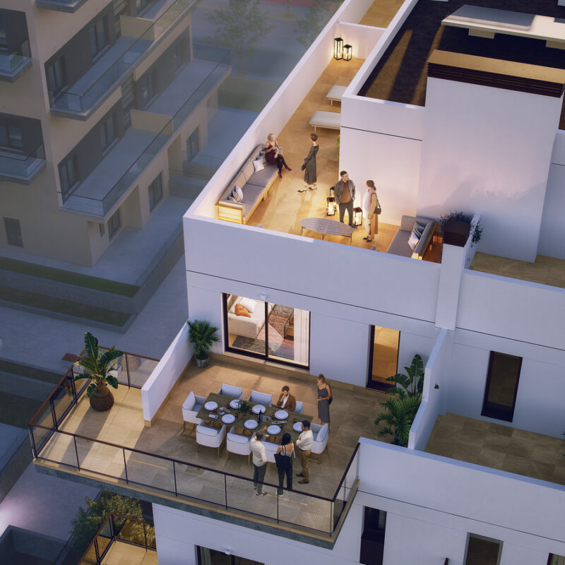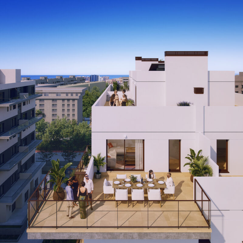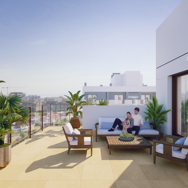 Disfruta de nuestras amplias terrazas, perfectas para relajarte y disfrutar del aire libre. Equipadas con cómodos espacios de descanso y vistas panorámicas, son ideales para desayunos soleados o cenas al atardecer. Este rincón privado se convierte en el escenario perfecto para momentos inolvidables con amigos y familiares. ¡Haz de tu terraza el refugio que siempre has deseado!