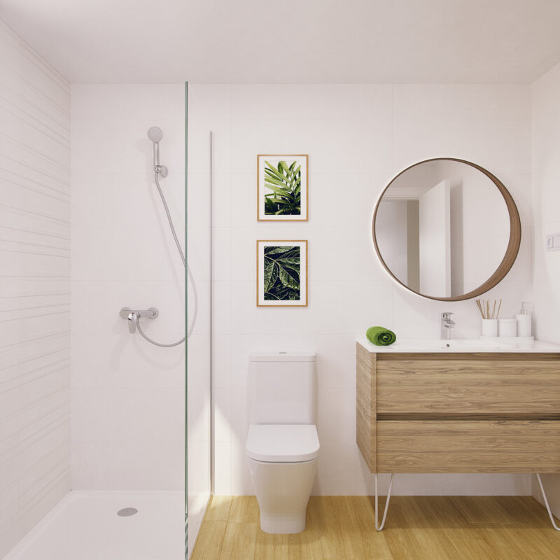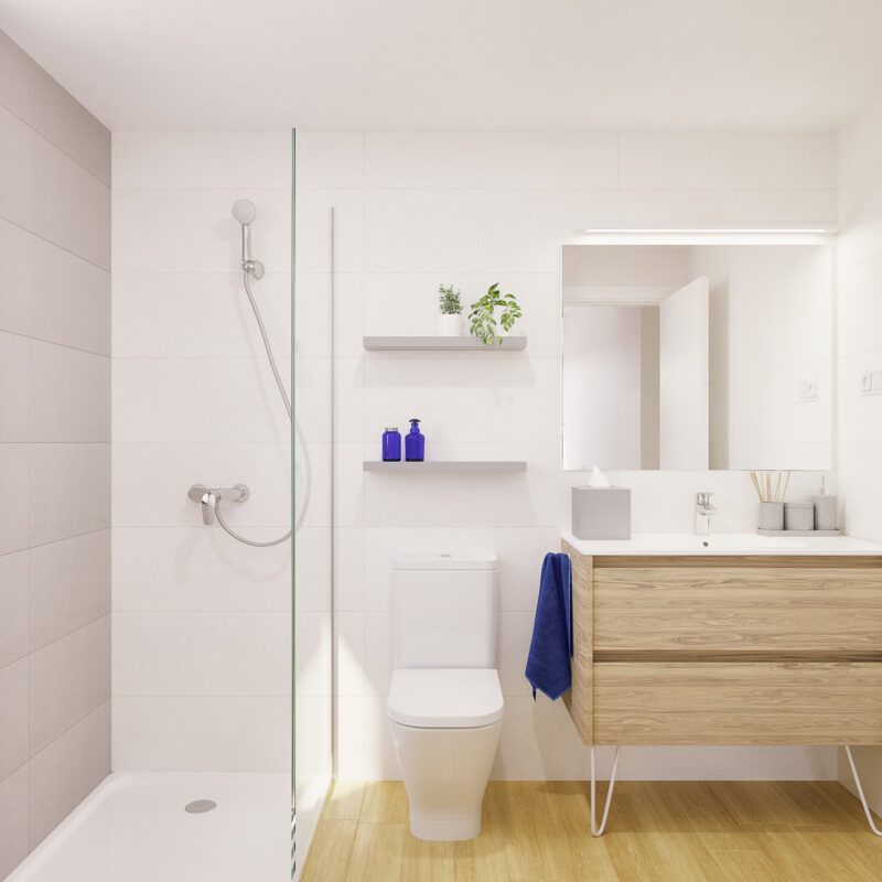 Descubre nuestros elegantes baños, diseñados para ofrecerte un oasis de confort y estilo. Con acabados modernos y materiales de alta calidad, cada baño combina funcionalidad y estética. Amplios espejos y duchas de lujo crean un ambiente relajante, ideal para tus momentos de bienestar. ¡Transforma tu rutina diaria en una experiencia de spa en casa!
