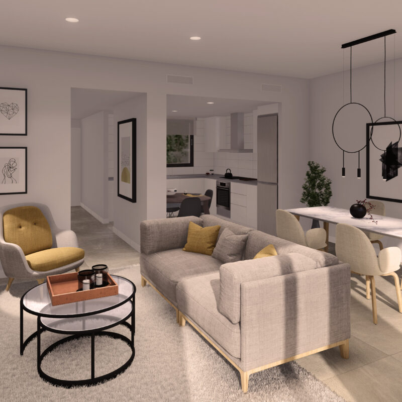 Descubre nuestros salones, espacios diseñados para ser el corazón de tu hogar. Con amplias distribuciones y ventanales que ofrecen vistas luminosas, cada salón combina comodidad y estilo. Los acabados elegantes y modernos, junto con suelos de alta calidad, crean un ambiente acogedor y sofisticado. Ideal para relajarte después de un largo día o para recibir a amigos y familiares, estos salones son el lugar perfecto para crear recuerdos. Imagina disfrutar de momentos inolvidables en un espacio que refleja tu personalidad y te invita a vivir al máximo. ¡Tu nuevo hogar te espera!