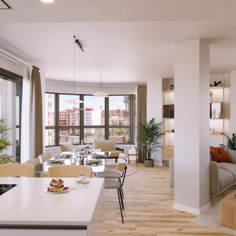 Descubre nuestros salones, espacios diseñados para ser el corazón de tu hogar. Con amplias distribuciones y ventanales que ofrecen vistas luminosas, cada salón combina comodidad y estilo. Los acabados elegantes y modernos, junto con suelos de alta calidad, crean un ambiente acogedor y sofisticado. Ideal para relajarte después de un largo día o para recibir a amigos y familiares, estos salones son el lugar perfecto para crear recuerdos. Imagina disfrutar de momentos inolvidables en un espacio que refleja tu personalidad y te invita a vivir al máximo. ¡Tu nuevo hogar te espera!